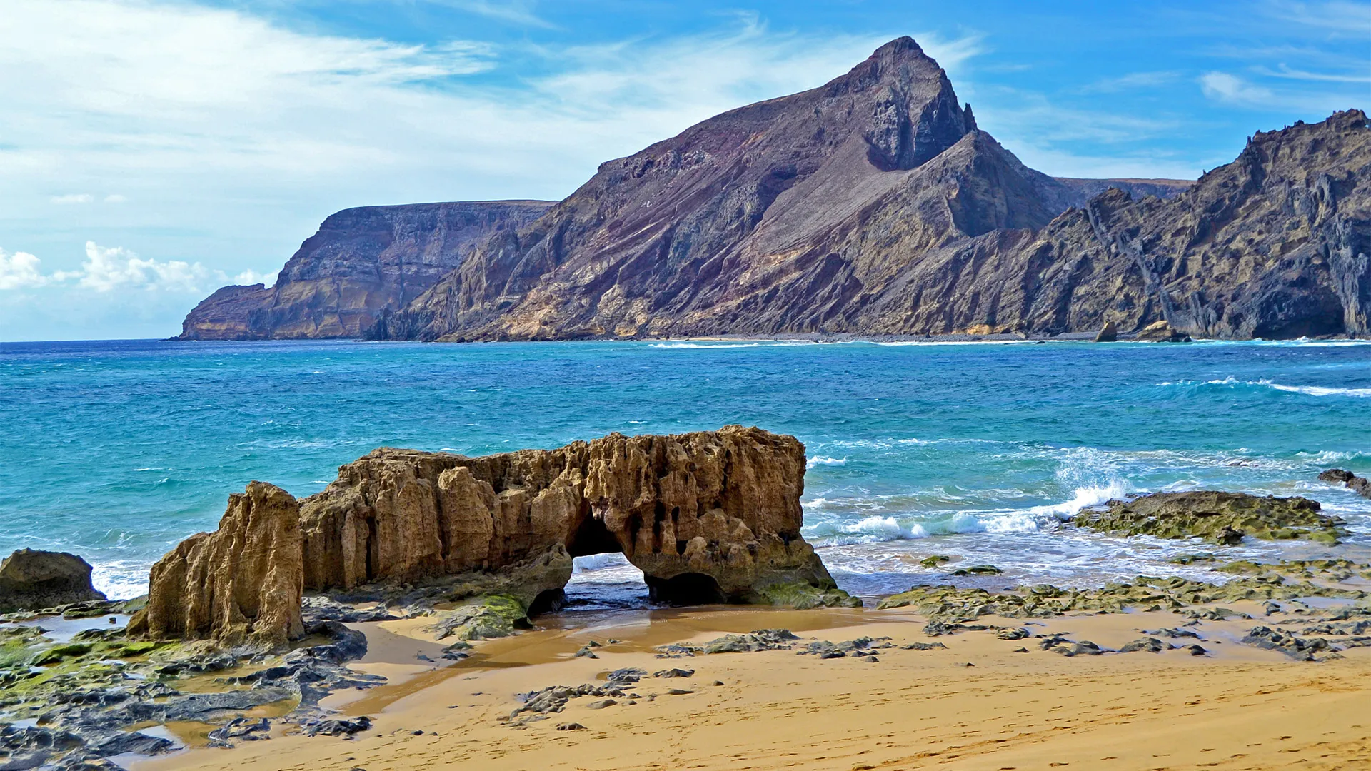 Dupa cum spuneam la inceput, aceasta calatorie necesita un drum de vreo doua ore cu feribotul. Pentru mine, a fost ocazia perfecta sa descopar ca menirea mea nu este sa fiu marinar. Nu mai petrecusem atat de mult timp pana atunci pe un vas, mai ales in ape oceanice destul de agitate. Ca sa scurtam povestea, nu am avut un apetit bogat in acea zi. Insa, combinatia de pastile si soare m-au facut sa-mi uit problemele de indata ce am debarcat in Porto Santo. Aceasta mica insula, cu ai sai 5.000 de locuitori (numar care se dubleaza pe timp de vara, multe proprietati apartinand cetatenilor straini ce isi petrec vacantele prelungite aici), se lauda cu o sectiune intinsa de plaja, cu nisip fin, laudat de toata lumea pentru calitatea sa (inclusiv medicinala, pare-se). In timpul sezonului de vara, cu hotelurile deschise si orasul plin de viata, se pot petrece cu usurinta cateva zile aici. In extra-sezon, cand marea majoritate a restaurantelor, magazinelor, hotelurilor sunt inchise sau functioneaza cu un program restrans, o excursie de o zi este suficienta. A se inchiria direct de pe feribot o bicicleta, care va sta la dispozitie toata ziua. Puteti explora insula dupa propriul ritm, seara revenind in port. Din pacate, noi am nimerit acea perioada de extra-sezon si, pe langa furtuna ce ameninta orizontul spre orele dupa-amiezii, un alt factor apasator se simtea in aer – criza. Desi Madeira e intrecuta doar de Lisabona ca prosperitate economica, efectele crizei s-au facut puternic resimtite aici, iar in Porto Santo, unde atat de multi depinde turism, e chiar mai greu. Am intalnit o romanca stabilita aici de ani buni. Lucra intr-un restaurant, insa programul era scurt. Prea putini turisti.