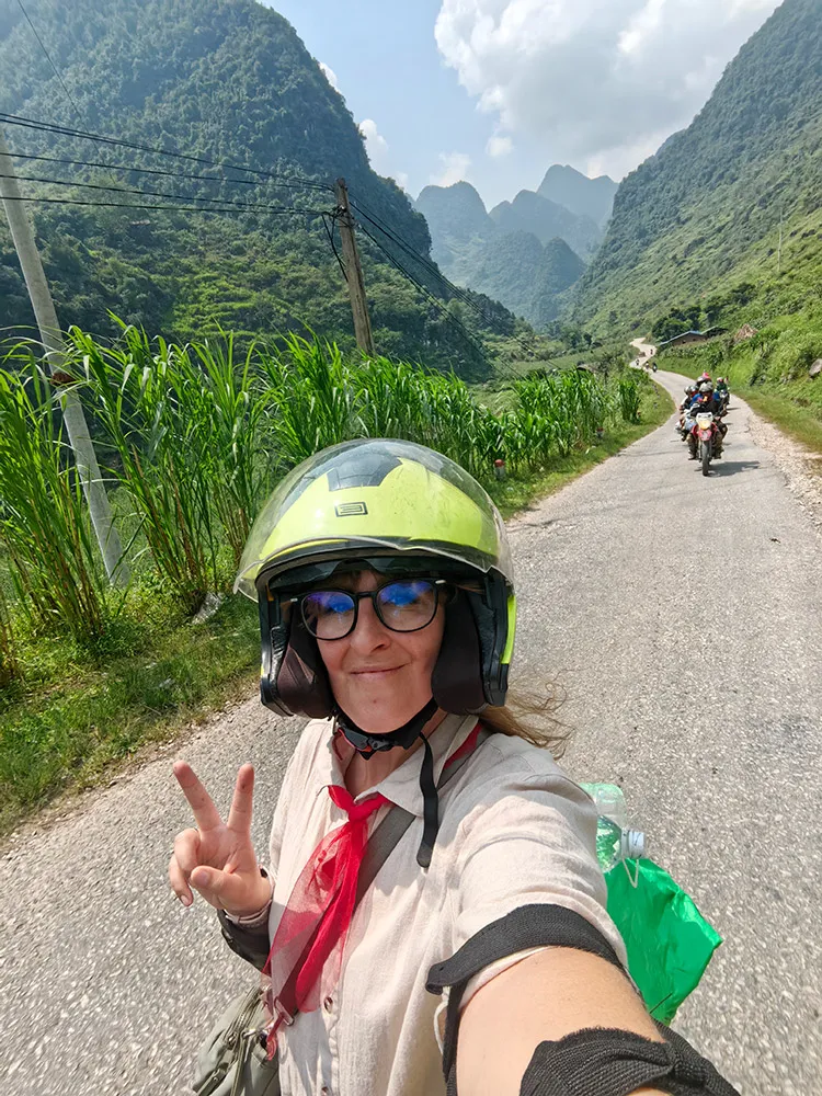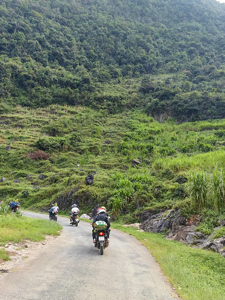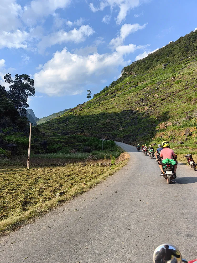 Circuitul nostru a continuat cu Ha Giang Loop, o ruta de 3 zile care se face cu motocicletele tot in nordul Vietnamului. A fost cea mai asteptata vizita a programului si am avut parte si de vreme buna. Am plecat din orasul Ha Giang pe un traseu de aproximativ 400 km, printre vai si munti, printre peisaje spectaculoase. Avand soferi experimentati care conduceau motocicletele, am reusit sa ne bucuram din plin de experienta. A doua zi pe Ha Giang Loop a fost si mai spectaculoasa, oferindu-ne peisaje si mai frumoase. La final, am vizitat si un fost palat al unui rege Hmong unde am aflat putin si din istoria locurilor. A treia zi pe Ha Giang Loop s-a dovedit a fi plina de aventura, cu opriri la doua cascade dar si cu multa daruire deoarece ne-am oprit intr-un sat sa cumparam alimente, incaltamine si rechizite pentru copiii din urmatoarele sate prin care aveam sa trecem. Cred ca a fost cea mai frumoasa zi, vazand cat de mult se bucurau copiii de cadourile primite.