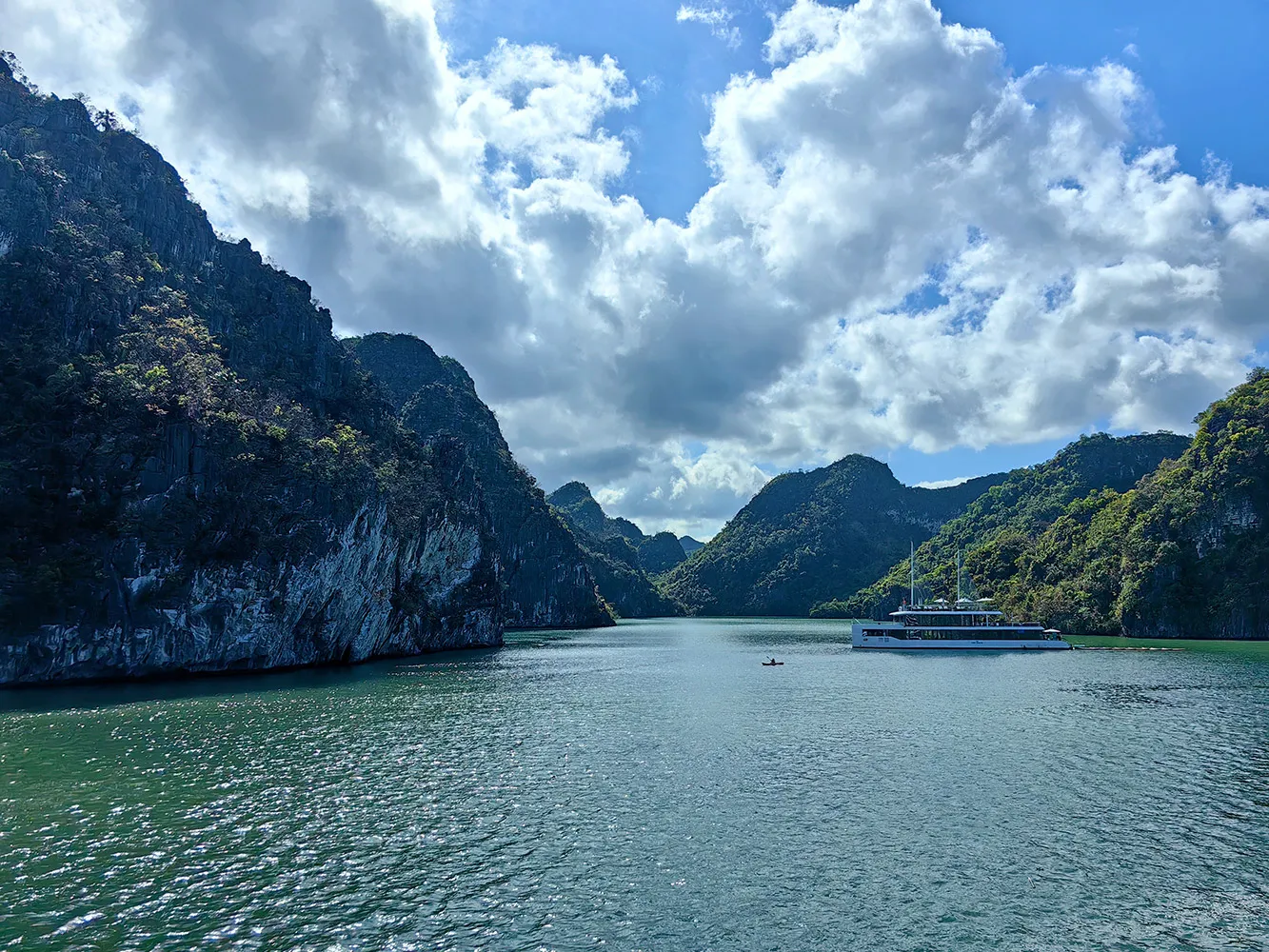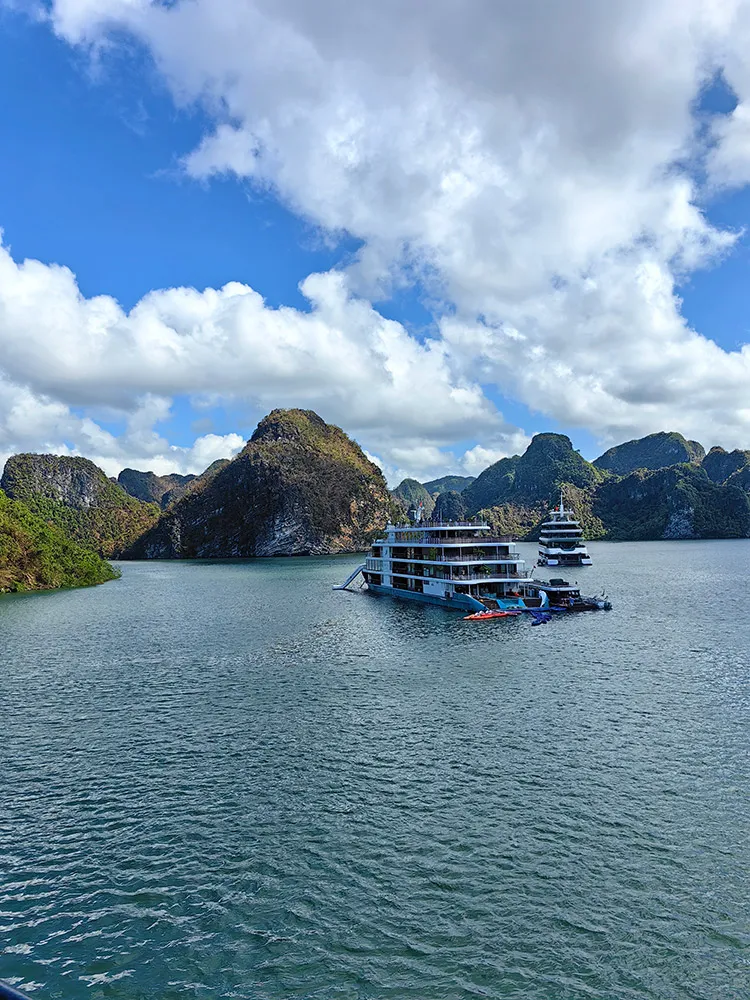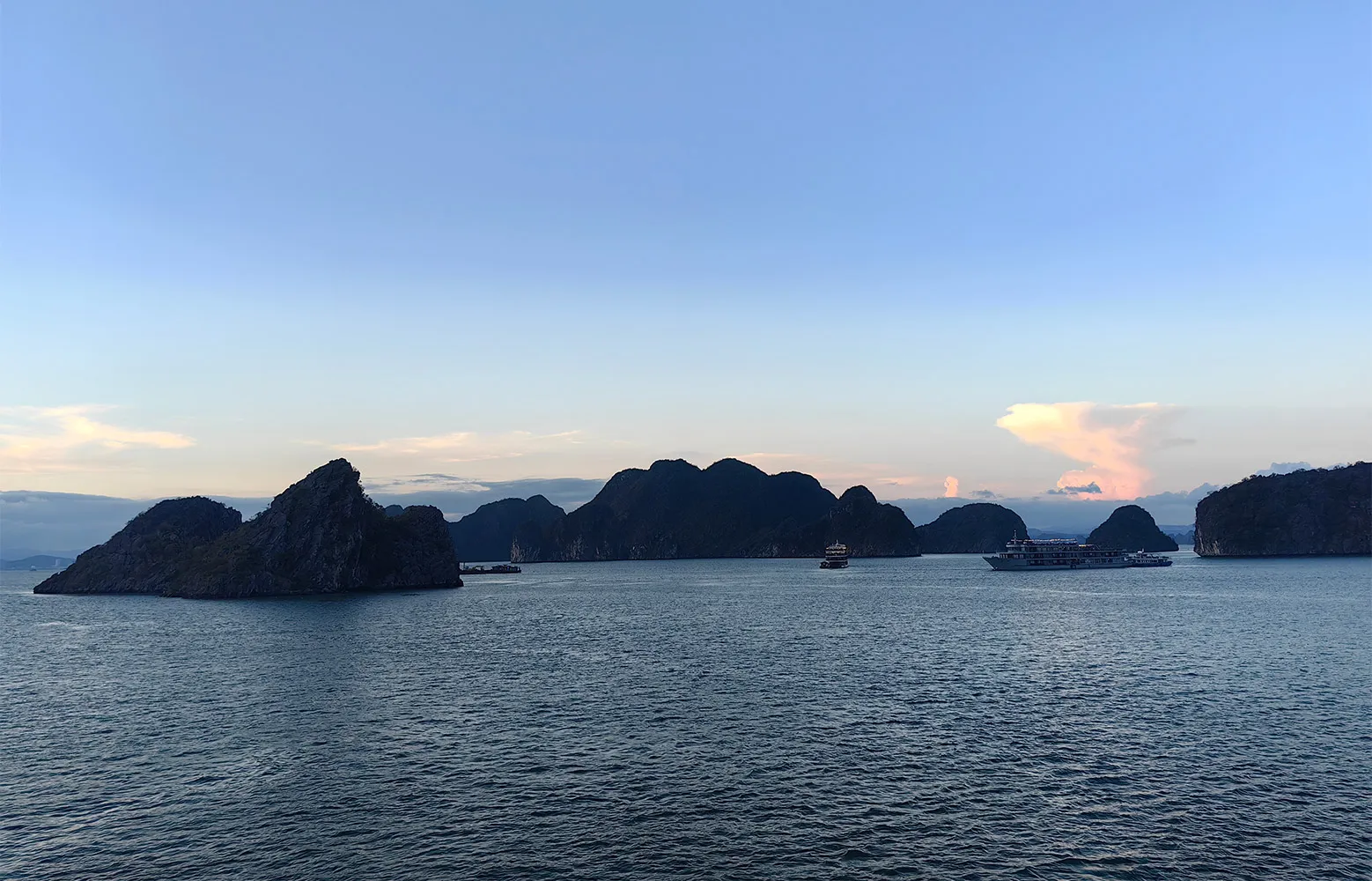 Dupa aceste zile pline de activitati a fost necesara putina odihna, asa ca am petrecut o noapte in Golful Ha Long, pe un vas de croaziera. Cine a dorit a putut face o plimbare cu caiacul in jurul vasului, dar in mare parte ne-am relaxat pe punte de unde am admirat privelistile asupra Ha Long Bay.