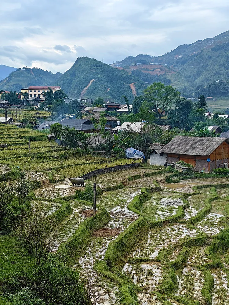 Din Hanoi am plecat apoi catre nordul tarii, in Sapa, zona renumita pentru terasele de orez si numeroase triburi entice care locuiesc aici. Am facut o plimbare de jumatate de zi printre cateva sate situate langa orasul Sapa si am avut ocazia sa intalnim oameni din minoritatile si triburile nordice, Black Hmong, Red Dao. Femeile de obicei se ocupa cu gospodaritul si vanzarea produselor traditionale si asa am reusit sa le cunoastem si noi. Traseul ne-a purtat prin vai si pe langa terase de orez, prin sate in care oamenii ne salutau cu zambetul pe buze.