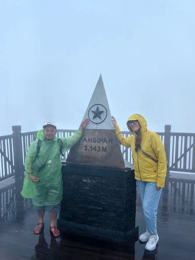 Inainte sa plecam din Sapa in urmatoarea zi, am urcat cu telecabina pe Muntele Fansipan, cel mai inalt din Vietnam. Desi si aici ne-a incurcat putin vremea, fiind ceata sus, a fost o experienta plina de aventura si ne-am distrat copios incercand sa ne ascundem de ploaie dar, in acelasi timp, sa ne bucuram de moment si de faptul ca am ajuns la 3.143 m altitudine.
