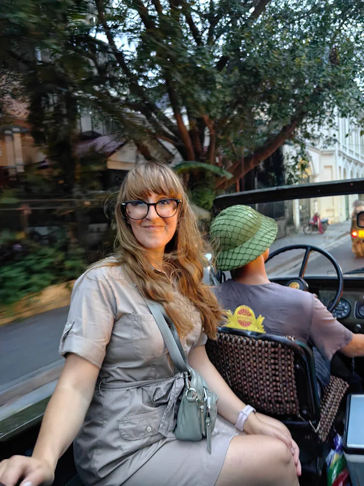 Urmatoarea zi am facut un tur de oras, dupa care ne-am plimbat cu cyco, o tricicleta condusa de un localnic. Astfel, am reusit sa vedem si alte zone ale orasului si sa ne relaxam admirand cladiri coloniale in centru sau piete locale si magazine ale localnicilor. Seara am iesit sa facem un tur culinar in cartierul vechi si am degustat faimoasa cafea cu ou si pachetele de primavara, ambele specifice bucatariei vietnameze.