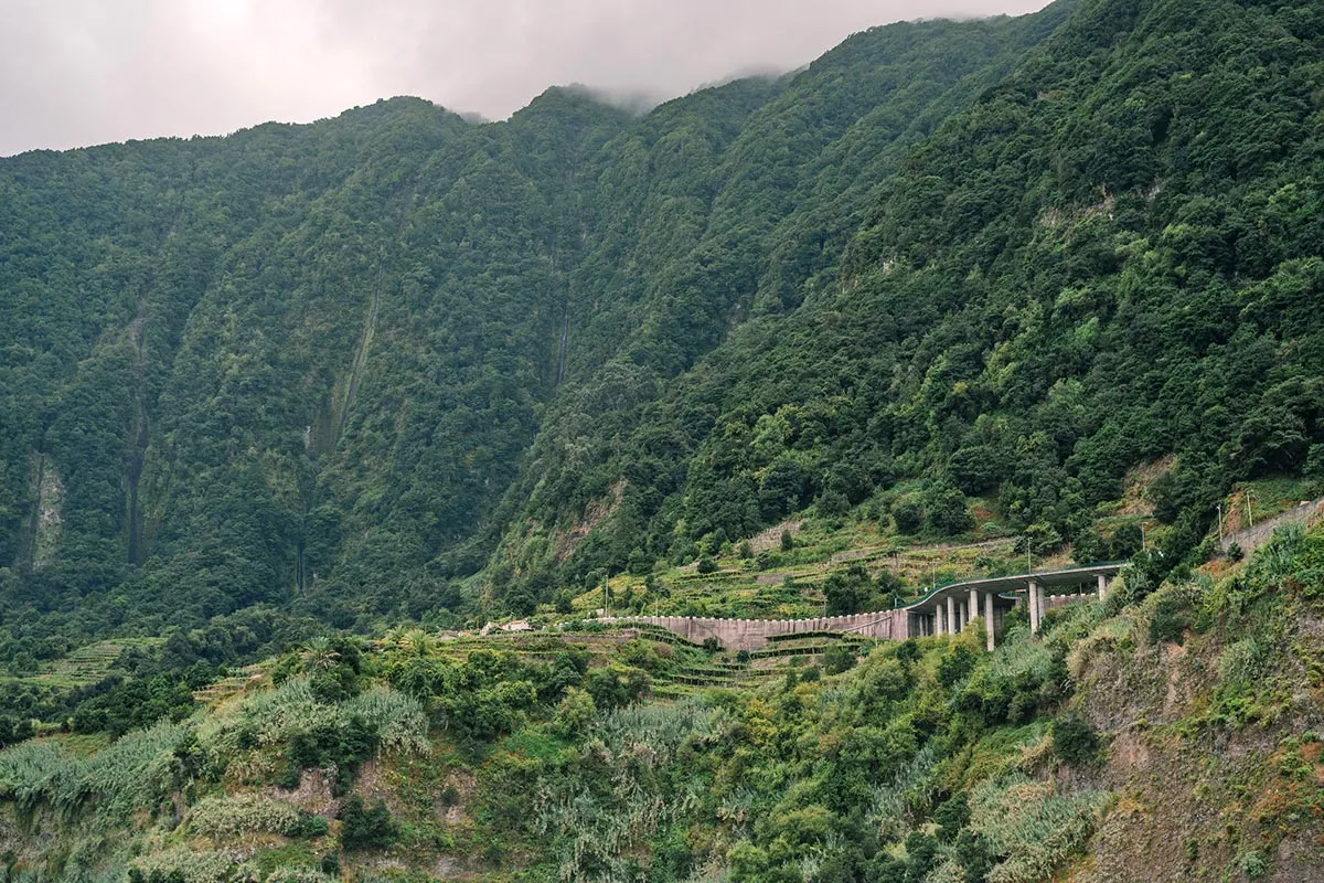 Am continuat apoi traseul prin Valea Serra de Agua, o succesiune de dealuri terasate, verdeata si case portugheze pe marginile versantilor, un minunat peisaj care ne-a condus ulterior in Pasul Encumeada, de unde se vede atat coasta de nord, cat si cea de sud a insulei. Ulterior am continuat pe un teren accidentat, pe Vereda do Fanal.
