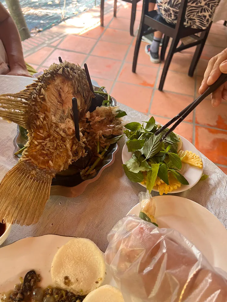 Am vizitat de asemenea, si Delta Mekong, o regiune uimitoare situata la aproximativ 2 ore de mers cu masina din Saigon, cunoscuta pentru peisajele pitoresti. Am admirat satele plutitoare si pietele locale, am vaslit barci traditionale si am degustat preparate din peste.