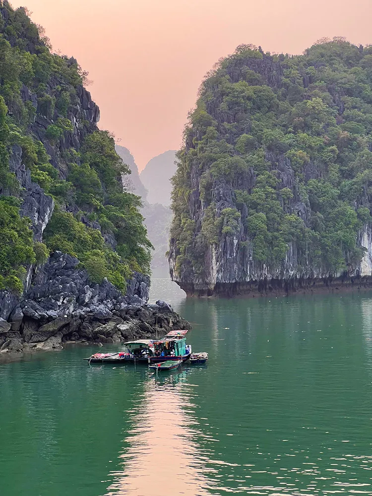 Cand vine vorba de peisaje spectaculoase, putine locuri se pot compara cu frumusetea ireala a Golfului Halong. Aflat in nordul Vietnamului, acest loc magic este cunoscut pentru stancile calcaroase masive care se inalta din apele turcoaz. Croaziera pe apele linistite ale Golfului Halong a fost cu siguranta o experienta de neuitat, oferind turistilor ocazia de a admira peisajul incredibil si de a explora pesterile ascunse si insulele misterioase. Cu toate acestea, supraglomerarea golfului se simte inca de la primele ore ale diminetii, cu vase ce impanzesc orizontul, pentru activitatile suplimentare, cel mai bine pornesti dis de dimineata.