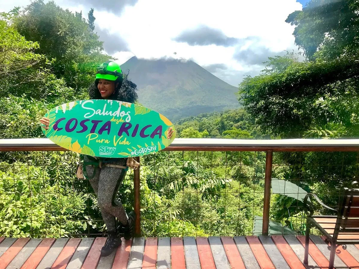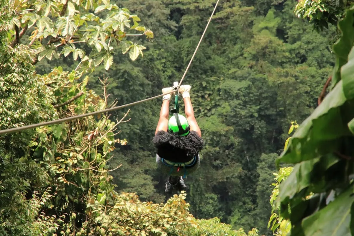 Am vizitat ulterior Arenal. Acolo se afla vulcanul Arenal si parcul de aventura cu aceeasi denumire. In afara de a fi un peisaj demn de orice film despre natura, idea de a crea un parc de aventura chiar acolo a fost cu adevarat uimitor pentru mine. In turul nostru, era inclus traseul cu tiroliene. Sunt sapte trasee la diferite altitudini, care parcurg tot parcul de distractie. Primul traseu este de proba. Este singurul care iti permite sa te razgandesti si unde poti sa decizi sa nu mai continui turul. Dupa al doilea traseu, deja nu exista cale de intoarcere si esti obligat sa termini toate cele cinci trasee restante. Cel mai spectaculos este al doilea traseu, de unde se vede si vulcanul Arenal, suspendat la o altitudine de aproximativ 200 de metri. Era important sa fim bine pregatiti pentru aceasta aventura, asa ca ghidul ne-a explicat cum trebuie sa ne imbracam pentru aceasta zi. Trebuia sa avem haine cat mai comode, de preferat, haine de sport care sa nu se agate de cablurile de siguranta. Nu puteam avea obiecte in buzunarele noastre ca sa nu le pierdem. Daca doream poze si filmulete, nu trebuia sa ne facem probleme: parcul ofera optiunea de a avea o casca cu o camera GoPro pentru filmarea experientei la tiroliene. Dupa tur, decideam daca voiam filmuletul in schimbul a 35 USD.