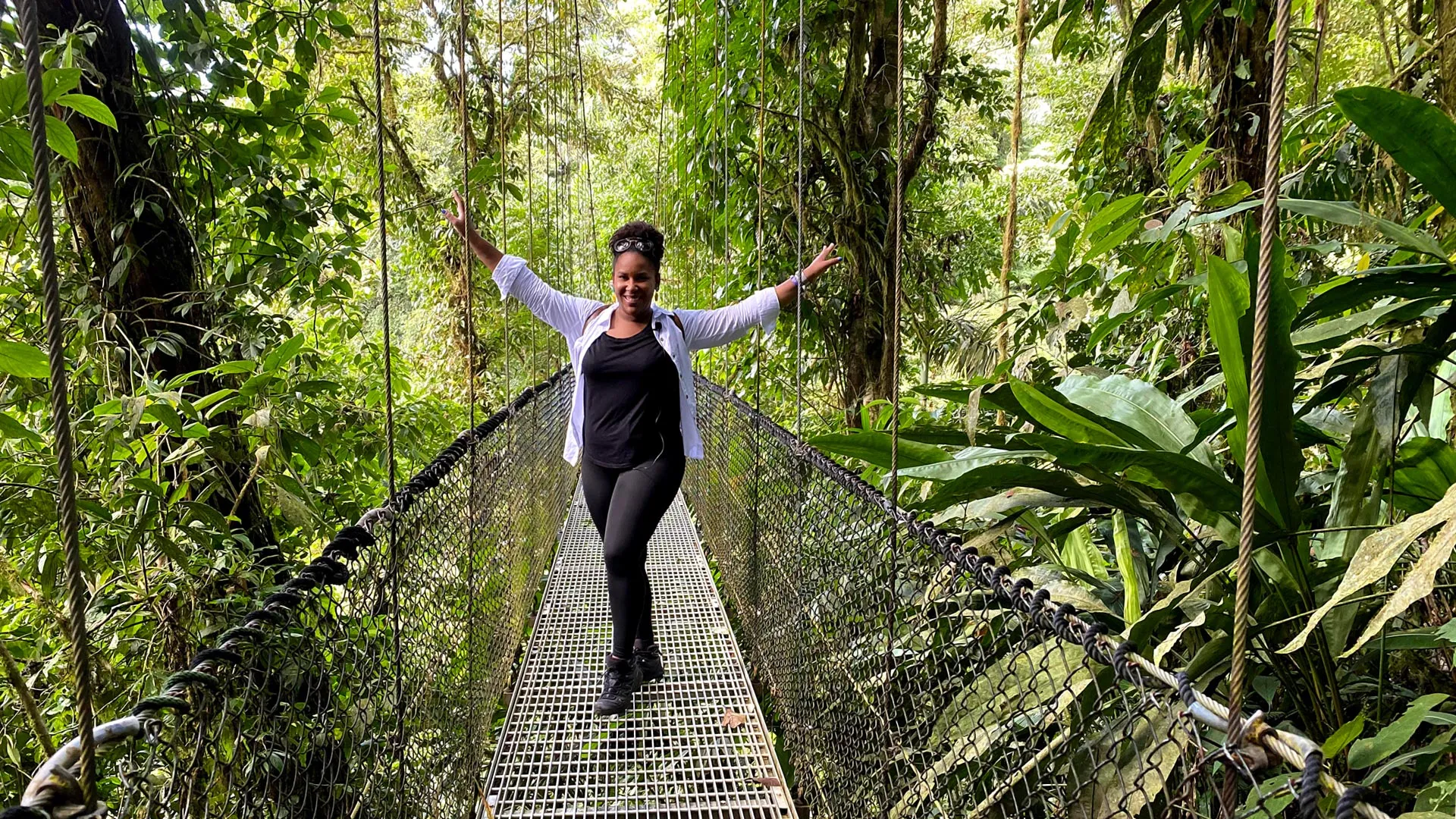 Dupa turul cu tiroliene, am facut turul pe jos, pe podurile suspendate, o alta experienta cu adevarat unica. A fost o plimbare foarte linistita printr-o jungla luxurianta, unde am avut ocazia de a descoperi mai multe specii de plante_ si pasari. Este o vizita de neratat daca ajungeti la Arenal. Tot in aceasta zi, am plecat sa vizitam baza vulcanului Arenal. In apropierea acestui vulcan, a crescut o vegetatie atipica ce a inflorit exact in zona unde au ramas urme de lava de la ultima explozie a vulcanului. Jungla din aceasta zona este mai putin verde, dar cu plante care cresc numai aici. La finalul turului, se ajunge la zona de unde se pot face cele mai reusite poze cu vulcanul Arenal. La Arenal, ne am cazat la Hotel Arenal Sprin Resort. Acest hotel are o pozitie privilegiata pentru ca poti vedea vulcanul chiar din camera ta sau de la masa restaurantului de unde poti lua un mic dejun uitandu-te la un peisaj cu adevarat uimitor. Tot aici, am avut la dispozite si piscina cu ape termale, care a fost apreciata de grup dupa o zi lunga de aventura si vizite foarte interesante. La Arenal, sunt mai multe tururi interesante de facut. Noi am avut si o plimbare de seara intr-o mini-jungla. Singura recomandare este ca, pentru aceasta vizita, sa folositi repelent impotriva tantarilor ce sunt gata sa va intepe la fiecare pas. Aici am vazut foarte multe specii diferite de boaste si am reusit sa vedem cea mai frumoasa broasca si anume red-eyed treefrog. Culorile si finetea aceastei fiinte mi-au atras atentia si am declarat-o broscuta mea preferata.