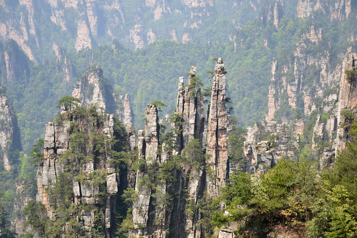 In ziua a cincea, am revazut Armata de Teracota si cartierul musulman din Xi’an, pentru ca seara sa zburam spre centrul Chinei, aterizand in Zhangjiajie. Urmatoarele doua zile le-am petrecut in Parcul National Zhangjiajie. Peisajele de aici sunt absolut senzationale si au fost o sursa de inspiratie pentru munții zburatori Hallelujah din pelicula Avatar, multe cadre fiind filmate chiar aici. Ne-am plimbat printre aceste stanci cu autocarul, cu trenuletul, cu telegondole si la pas. O experienta interesanta a fost coborarea cu liftul Bailong - un lift cu pereti de sticla, construit pe latura unei coloane masive din gresie ce are o inaltime de 330 de metri. Este cel mai inalt lift din lume construit in aer liber si este cunoscut si sub numele de „Liftul celor 100 de Dragoni”. O alta experienta memorabila a fost plimbarea pe Podul de Sticla din Zhangjiajie, situat la cea mai mare distanta fata de sol (260 de metri). Cu o lungime de 430 de metri, podul a fost pana de curand si cel mai lung pod de sticla din lume. Acest record a fost insa intrecut de un alt pod din China, inaugurat in provincia Hebei.