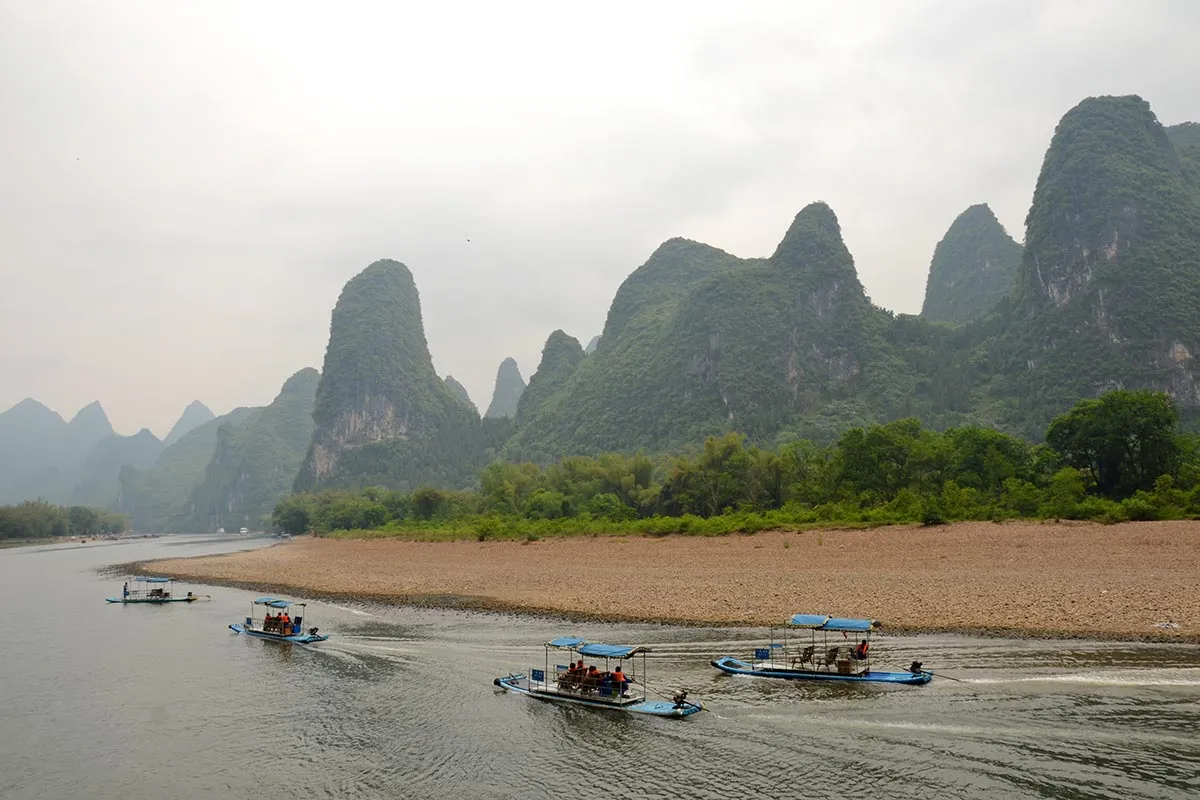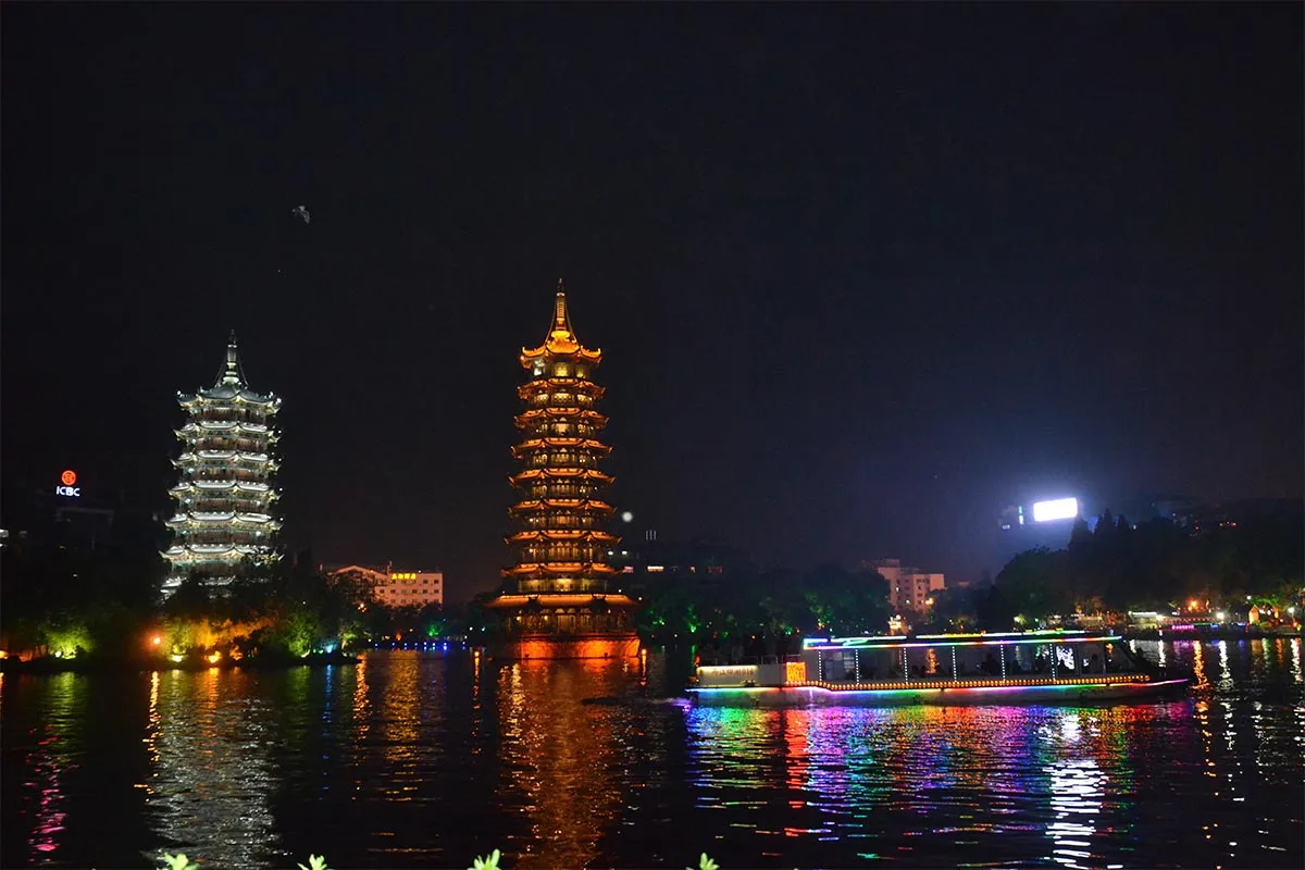Ziua a noua a fost cea mai plina si mai frumoasa zi din tot circuitul. In prima jumatate a zilei, ne-am plimbat cu un vas de croaziera pe apele linistite ale Raului Li. Piscurile de calcar cu forme care mai de care mai ciudate, presarate pe ambele maluri ale Raului Li, vegetatia bogata si plutele din bambus trecand agale pe langa vasul de croaziera creeaza peisaje de o frumusete rara. Si, pentru a ne putea bucura din plin de frumusetea peisajelor, ne-am continuat ziua cu un zbor cu elicopterul deasupra Guilin-ului. Zborul cu elicopterul este o experienta inedita in sine, dar, daca frumusetea zonei survolate iti taie respiratia, atunci poti fi sigur ca peste ani si ani vei povesti cu drag nepotilor despre aceasta zi. Si pentru ca in ziua urmatoare trebuia sa plecam din Guilin si nu reuseam sa ma mai satur de acest minunat oras, am incheiat ziua cu o plimbare de aproximativ trei ore si jumatate prin zona centrala si intens luminata a orasului. Dealul Elephant Trunk, Pagoda Soarelui si Pagoda Lunii sunt principalele obiective din zona centrala ce nu trebuie ratate.