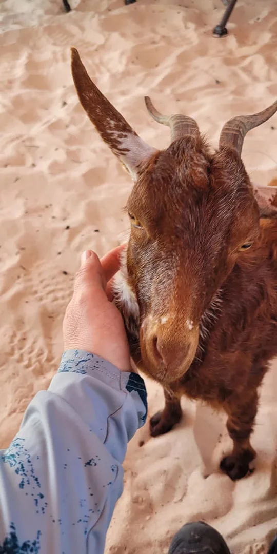 Un alt „localnic" omniprezent? Caprele! Le intalnesti absolut peste tot: pe dealuri, pe poteci, la marginea drumului, pe mese, cautand servetele, pe care adora sa le manance (!). Pline de farmec, fac parte integranta din peisajul socotrez, desi reprezinta una dintre principalele amenintari la adresa arborilor de Sangele Dragonului, devorand puietii inainte ca acestia sa aiba sansa sa creasca.