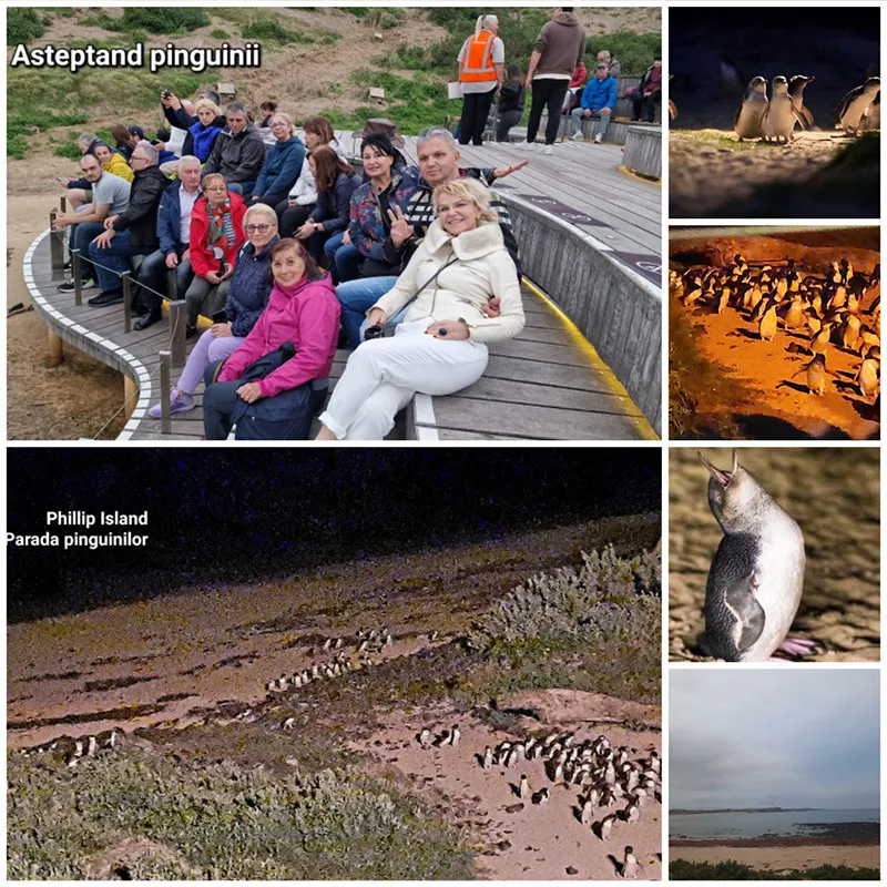 Dar nu ne limitam la urbe, ci plecam sa exploram imprejurimile, spre Phillip Island unde la apus de soare am asteptat in liniste si cu emotie parada pinguinilor. Cel putin odata in viata se intampla ca emotiile sa sparga linistea! Asa s-a intamplat cand zeci, apoi sute, apoi mii de pinguini pitici si dragalasi ieseau din ocean si se indreptau in mod ordonat spre casutele lor terestre.