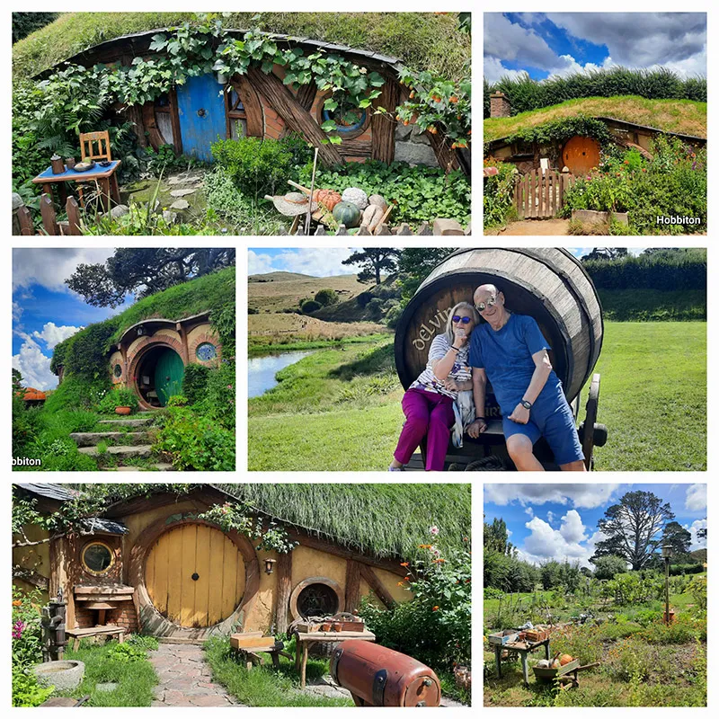 Dar poate ca trebuia sa incep cu asta: cu tara Hobbitilor. Munti, fiorduri, pasari, oi si vaci, fructe le intalnesti peste tot, fiecare cu specificul lor, dar Hobbiton Village numai in Noua Zeelanda vei gasi. Si de mergi in vizita la casutele lor, vei intra intr-un basm frumos din care cu greu vei mai iesi, sau il vei lua si-l vei purta cu tine. Fantastic! Putem sa numim Noua Zeelanda ,, noul Hollywood'', este tara unde s-au facut filmarile pentru Stapanul Inelelor, The Hobbit, Jurasic Park, King Kong, etc.