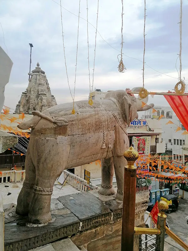 Am plecat din Jodhpur spre Orasul Alb, Udaipur, pe un traseu de 250 km prin munti. La jumatatea drumului se afla Templul Ranakpur, un templu Jainist deosebit de frumos, cu peste 1400 de coloane de marmura sculptate delicat. Precum este obieceiul in fiecare templu, trebuie sa te descalti la intrare. Aici se plateste o taxa de fotografiere pentru a putea face poze in templu, dar taxa este modica si merita platita pentru minunatiile de aici.