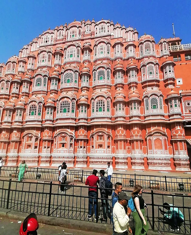 Calatoria a inceput in New Delhi, iar dupa un transfer cu autocarul de 5 ore am ajuns in Jaipur, capitala statului Rajasthan, cunoscut sub numele de Orasul Roz. Din turul de oras nu puteau lipsi Hawa Mahal, fortul Amber, Muzeul Palatului si observatorul Jantar Mantar. Hawa Mahal, cunoscut si sub numele de Palat al Vanturilor, este emblema orasului si are 953 de ferestre inalte, folosite de doamnele din palat pentru a privi lumea exterioara fara a fi vazute. Fortul Amber a fost resedinta domnitorilor din Rajput, este construit din gresie rosie si marmura, in stilul architectural Rajput. Muzeul Palatului este o resedinta regala si fostul sediu administrativ al conducatorului statului Rajasthan, iar o parte din acesta este in zilele noastre muzeu. De remarcat in interiorul muzeului sunt: colectia de haine regale formata din rochiile printeselor, reginelor si ale Maharaja, precum si casa de oaspeti regala, Mubarak Mahal, o cladire construita in 3 stiluri – Mughal, Rajput si britanic.