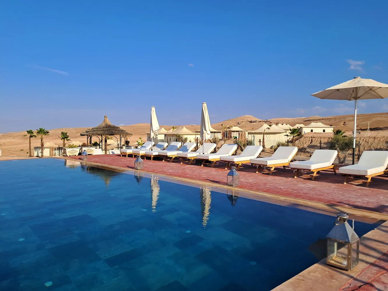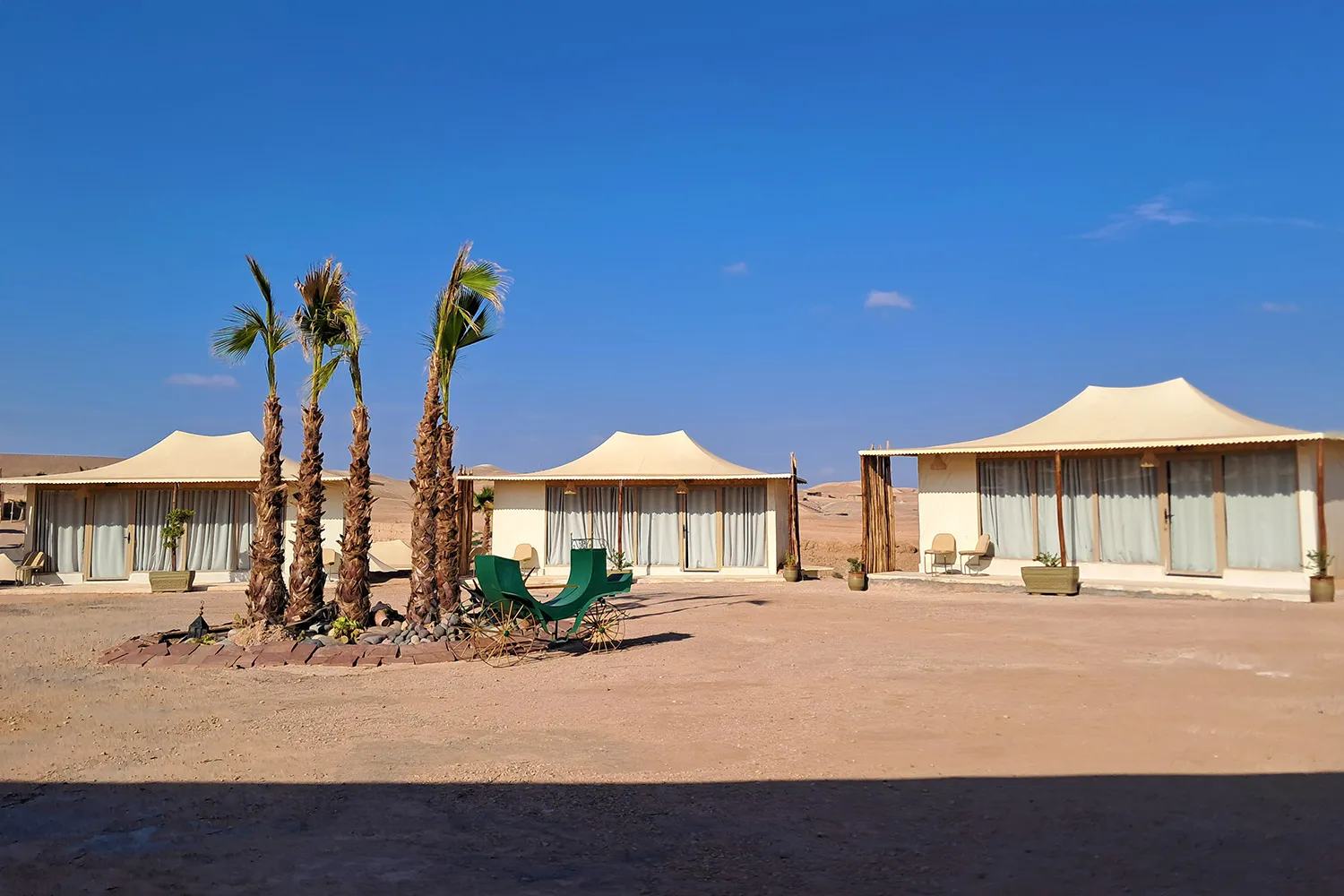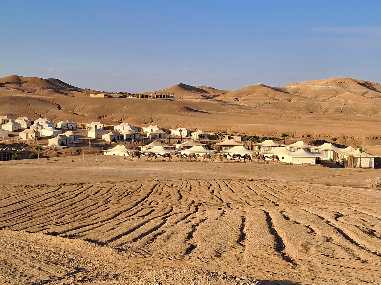 Desertul Agafay este la aproximativ 30 de minute de Marrakech si este o zona destul de nou exploatata pentru turism, in plina dezvoltare. Aici poti ajunge relativ usor din oras, desi drumurile lasa de dorit, si te poti bucura de o aventura intr-un luxury camp cu corturi si casute. Majoritatea camp-urilor ofera piscine, zone de relaxare si restaurante unde seara au loc spectacole traditionale de dans si jonglerii cu foc. Desi zona nu se bucura de nisipul fin din Sahara, totusi poti imbina aici relaxarea si linistea data de izolarea camp-urilor, cu activitati precum plimbari cu camilele, jeep sau ATV safari, iar in viitor chiar de plimbari cu balonul cu aer cald.