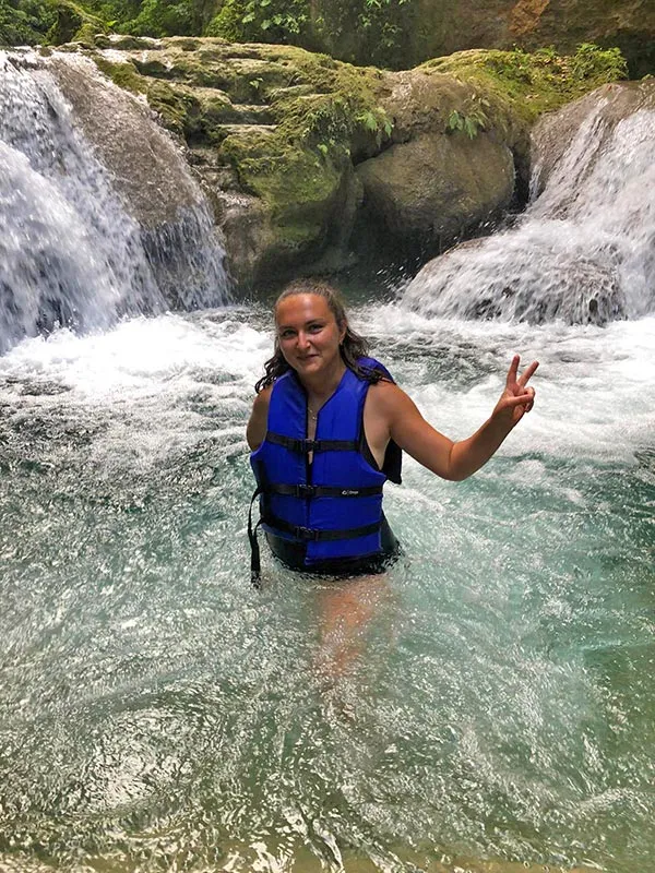 Si, cum aventura trebuia sa continue, am ajuns la YS Falls unde, cu minimum de echipament, adica papuci de apa, costum de baie si prosop, ne-am plimbat printre cascade, ne-am racorit, dupa care am servit un pranz delicios, cum altfel decat Jerk Chicken with rice and beans 😊. Toata experienta a durat aproximativ 2 ore, insa se poate petrece mult mai mult timp in racoarea naturii.