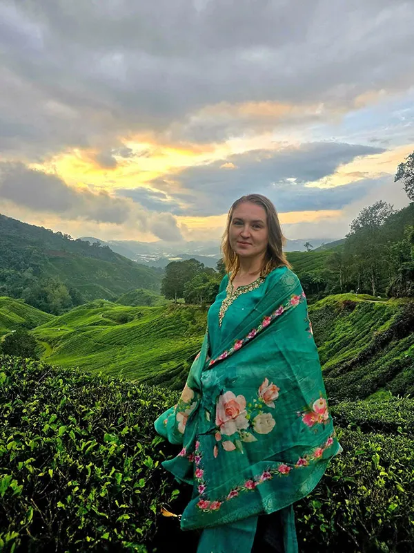 • Turul la rasarit pe plantatia de ceai a fost, fara indoiala, unul dintre cele mai magice momente ale calatoriei. Am pornit devreme, pe o ceata usoara, iar pe masura ce soarele rasarea, cerul s-a colorat in nuante de roz, portocaliu si auriu, reflectandu-se peste randurile perfect aliniate de ceai. Aerul era proaspat, linistea deplina, iar peisajul – pur si simplu spectaculos. Este genul de experienta care te face sa te opresti, sa respiri adanc si sa fii recunoscator.