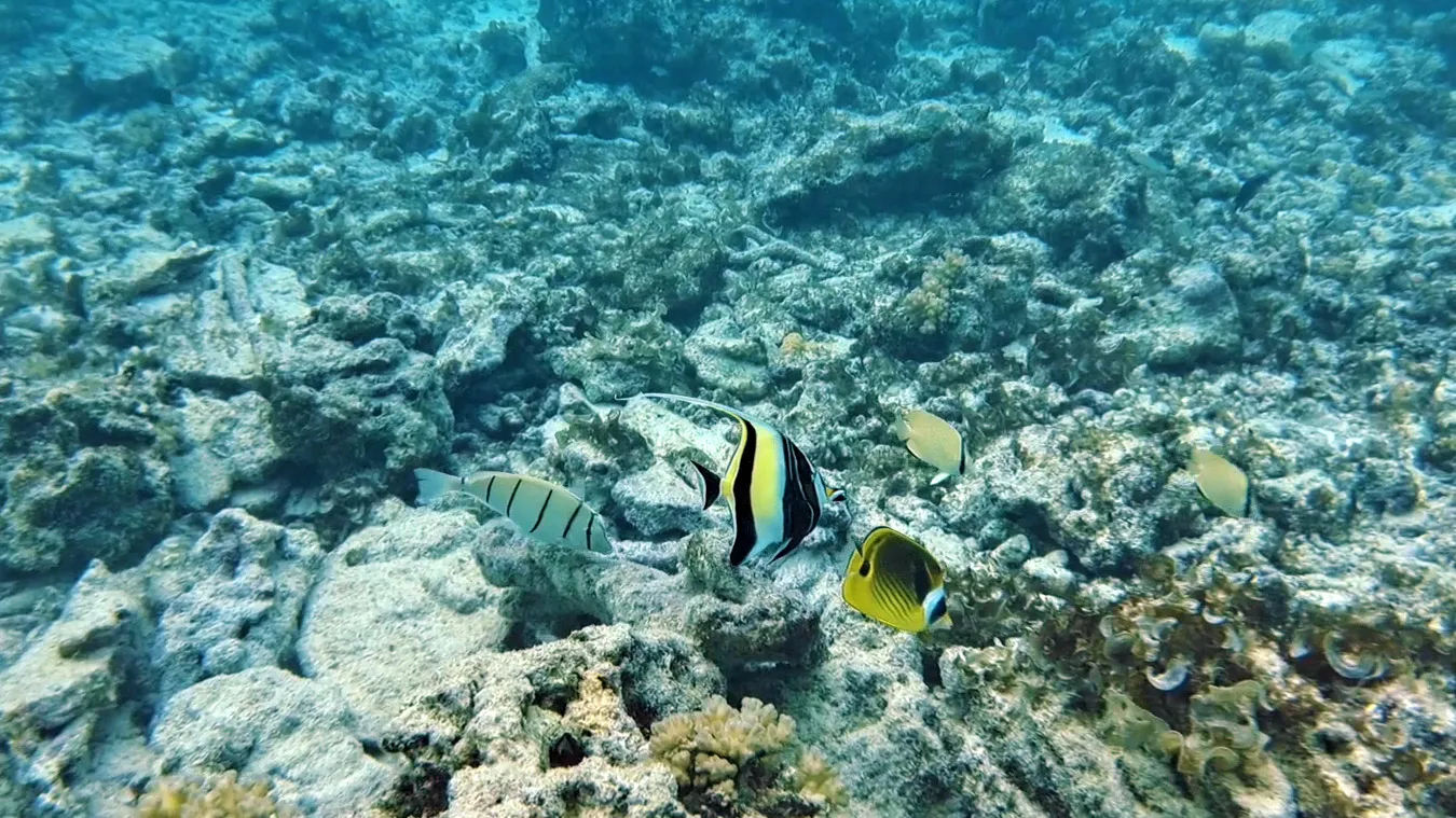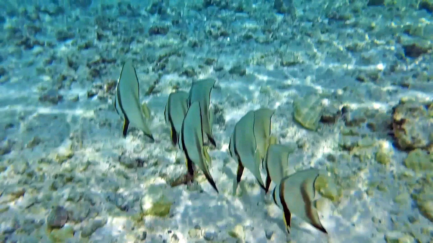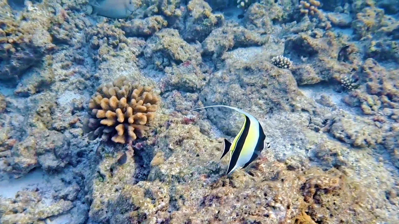 Ce ne-am dorit foarte mult si am avut parte din plin? SNORKELING! Ne-am indragostit din prima clipa de viata subacvatica. Atata minunatie atat de aproape de noi, atata culoare, freamat si iarasi liniste. In apa nu auzi decat rontaitul pestilor cand musca din corali, este foarte amuzant. Echipamentul de baza (care nu trebuie sa lipseasca vreodata din bagajul pentru Maldive!) a fost suficient pentru a explora laguna ce inconjoara insula. Si de fiecare data cand credeam ca le-am vazut pe toate, mai aparea un peste ciudat cu trompa sau dungi si buline, un crab cu ochi albastri sau un coral cu stelute. Am filmat cat pentru un documentar in 5 episoade, caci am vrut sa luam cu noi fiecare coltisor din acest minunat loc. Stiti cum arata lumea subacvatica? Imaginati-va o gradinita unde copiii sunt lasati liber sa deseneze cum vor ei pesti: cu dungi verticale, orizontale, cu pete, cu buline, cu o culoare, 2 culori, 5 culori, mai lungi, mai plati, mai rotunzi… Si apoi vine Doamne Doamne si spune: “Ii facem pe toti!”. Cum sa nu ramai fermecat?!