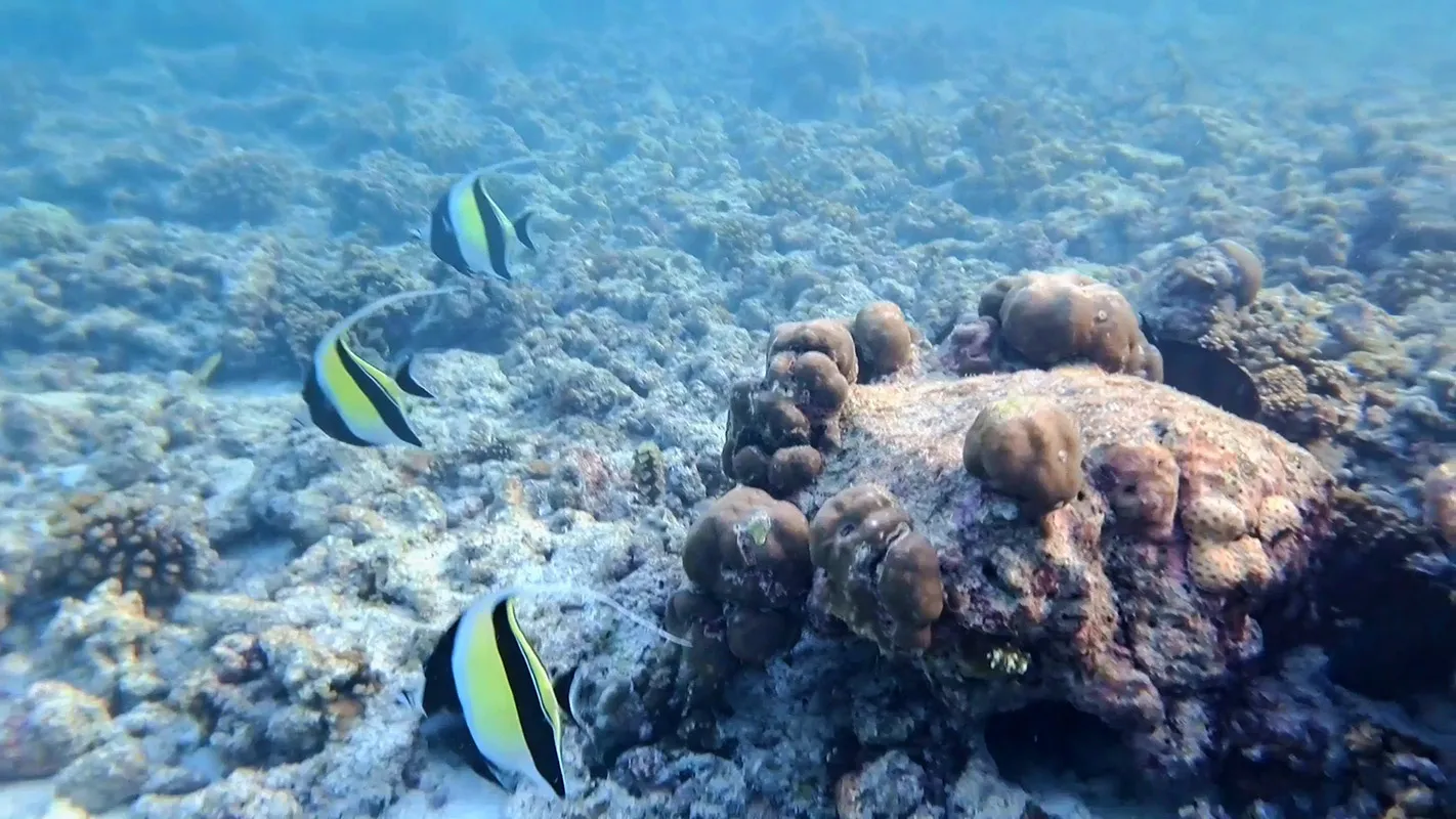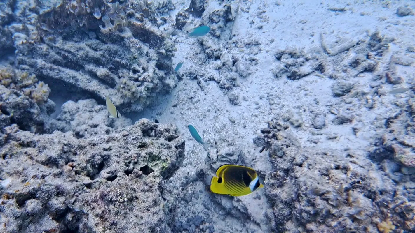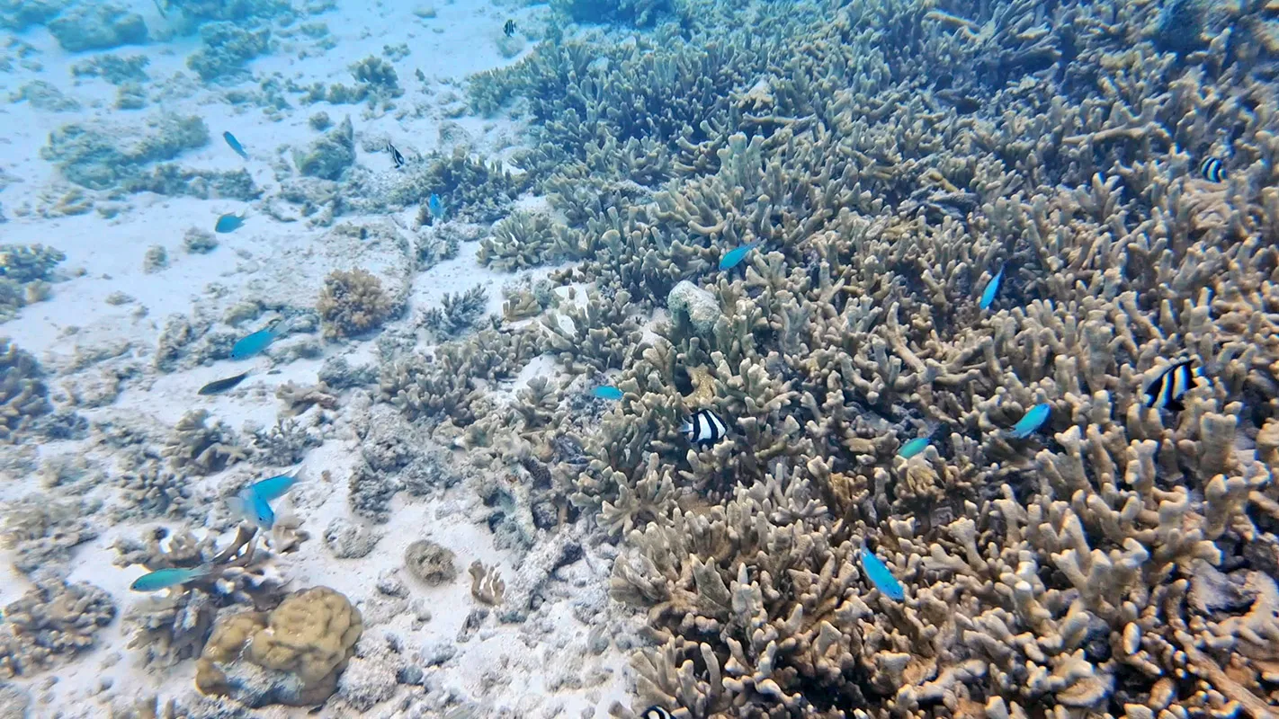 Ce ne-am dorit foarte mult si am avut parte din plin? SNORKELING! Ne-am indragostit din prima clipa de viata subacvatica. Atata minunatie atat de aproape de noi, atata culoare, freamat si iarasi liniste. In apa nu auzi decat rontaitul pestilor cand musca din corali, este foarte amuzant. Echipamentul de baza (care nu trebuie sa lipseasca vreodata din bagajul pentru Maldive!) a fost suficient pentru a explora laguna ce inconjoara insula. Si de fiecare data cand credeam ca le-am vazut pe toate, mai aparea un peste ciudat cu trompa sau dungi si buline, un crab cu ochi albastri sau un coral cu stelute. Am filmat cat pentru un documentar in 5 episoade, caci am vrut sa luam cu noi fiecare coltisor din acest minunat loc. Stiti cum arata lumea subacvatica? Imaginati-va o gradinita unde copiii sunt lasati liber sa deseneze cum vor ei pesti: cu dungi verticale, orizontale, cu pete, cu buline, cu o culoare, 2 culori, 5 culori, mai lungi, mai plati, mai rotunzi… Si apoi vine Doamne Doamne si spune: “Ii facem pe toti!”. Cum sa nu ramai fermecat?!