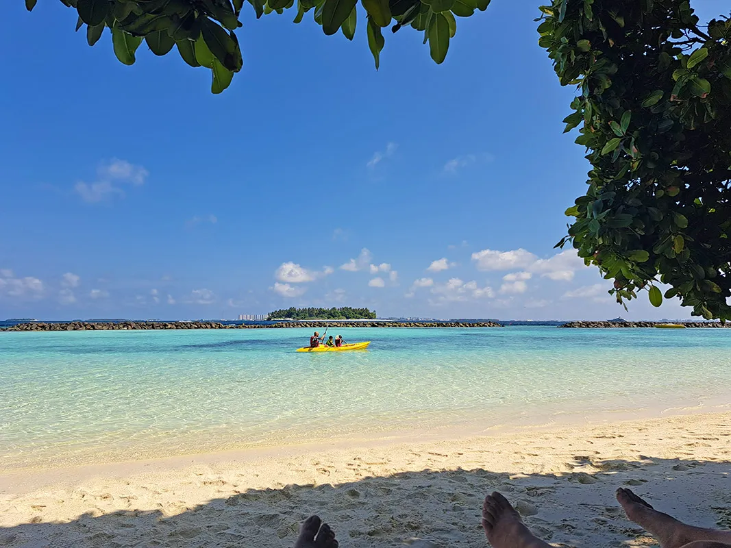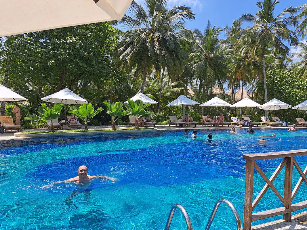 Si, nu in ultimul rand, oamenii locului, maldivienii care ingrijesc de vacanta ta perfecta, care zambesc si te saluta oriunde ii intalnesti, care te servesc cu amabilitate in orice loc si cu orice ti-ai dori, care grebleaza nisipul dintre palmieri, iti bat la usa sa iti ofere prosoape curate, sunt foarte atenti la masa sa nu iti lipseasca nimic sau pur si simplu iti zambesc cald cand te intalnesc oriunde pe insula.