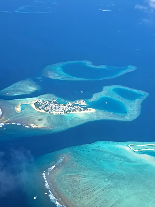 Am zburat cu charter HiSky si trebuie sa recunosc ca imi fusese dor sa zbor! Am prins dimineata chiar deasupra Maldivelor, iar nebunia de albastru de sub noi, cu toate nuantele si insulele maldiviene, ne-a fermecat instantaneu!