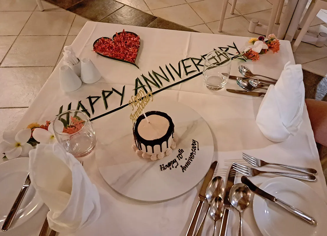 Aceasta a fost luna noastra de miere! Desi am implini 10 ani de casatorie (iar Bandos a avut grija sa ne surprinda cu o masa frumos aranjata, cu flori si tortulet), am considerat-o luna noastra de miere, caci a fost cea mai fermecatoare vacanta dintre toate, intr-un loc de o frumusete greu de imaginat, un vis in care dorim sa ne intoarcem!