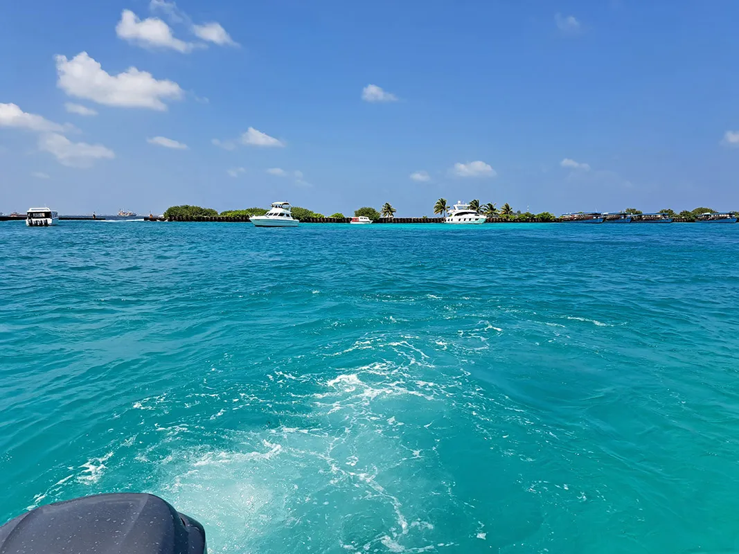 La iesirea din aeroport ne-a surprins apa din port – incredibil de cristalina, curata si verde! Transferul nu s-a lasat mult asteptat si iata-ne navigand cu salupa rapida spre destinatia noastra: Bandos Island Resort.