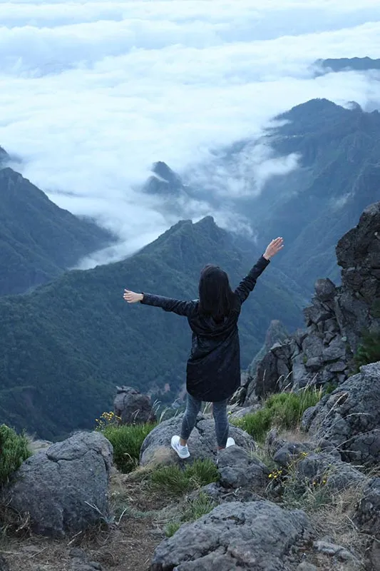 Sunrise Jeep Tour a scris pe mine toata dimineata, 5:30 dimineata, in special cat timp urcam muntii impunatori din Madeira, prin ceata si serpentine de off road, fara sa imi dau seama daca inca dorm sau m-am trezit. Am realizat ca sunt mai mult intr-un basm atunci cand am ajuns la Pico de Areeiro, la 1.818 metri deasupra nivelului marii; este al treilea cel mai inalt varf de pe insula si locul in care simti ca plutesti cu adevarat deasupra norilor. Practic, chiar o faci. Toata experienta a fost fascinanta, chiar am luat si pranzul in natura, inconjurati de un alt tip de vegetatie deja, una montana.