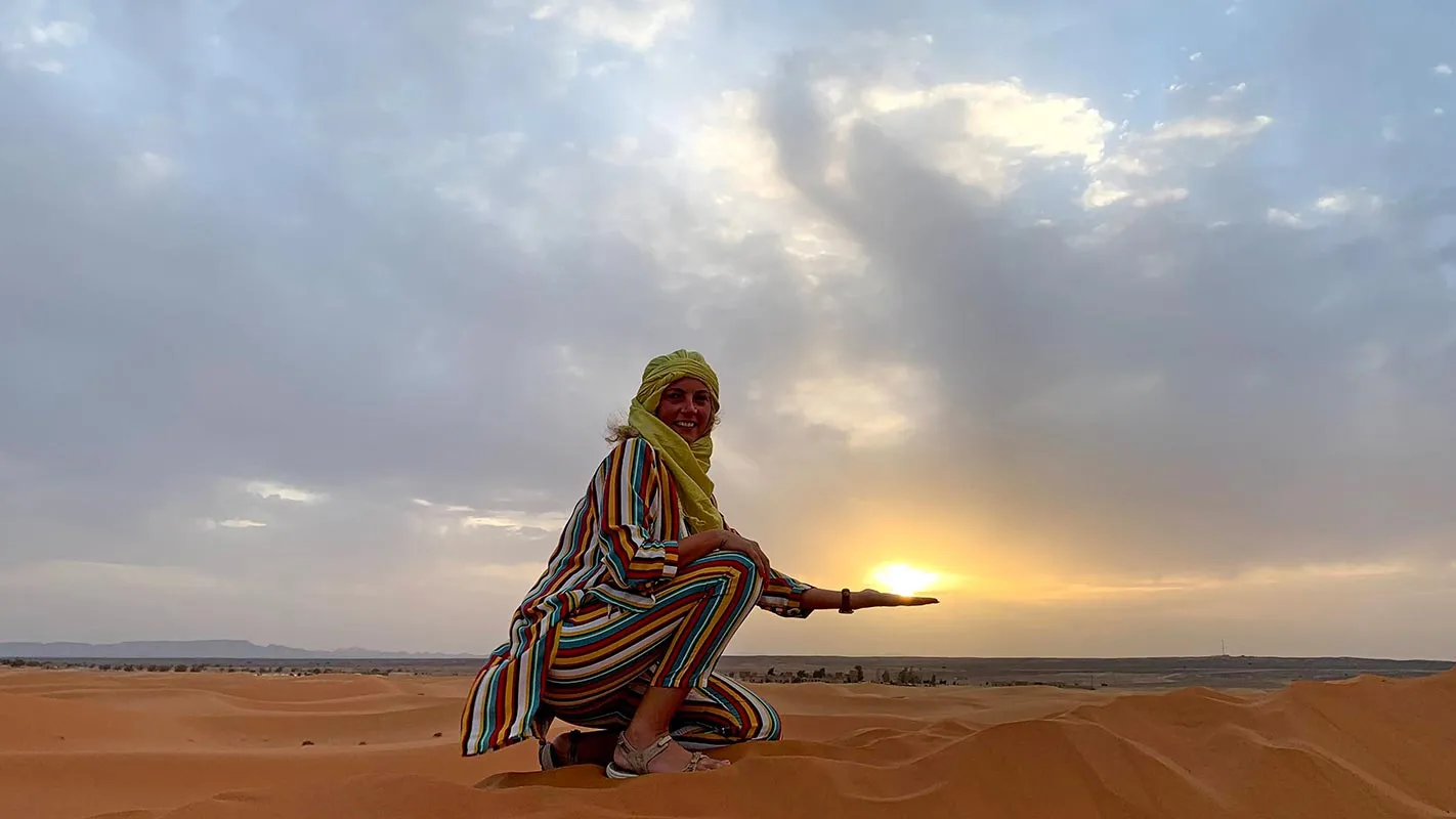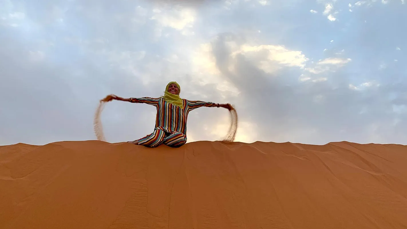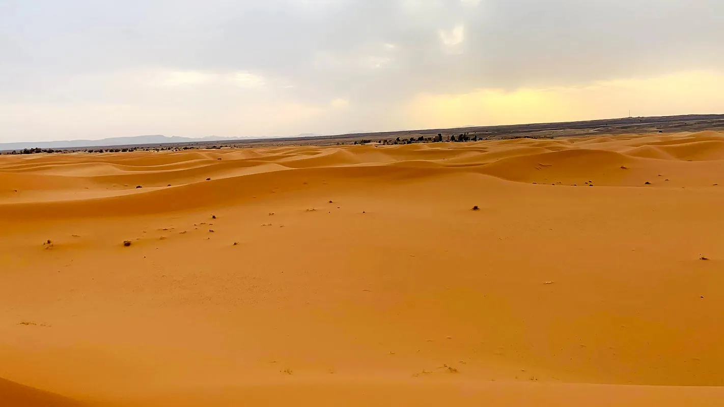 Desertul Sahara cu dune inalte si nisip auriu te asteapta sa il explorezi. Poti alege sa vizitezi un sat de berberi, o plimbare cu camila prin desert sau un safari cu un jeep 4x4. Iti recomand sa mergi dupa-amiaza ca sa te bucuri de culorile unui minunat apus de soare.