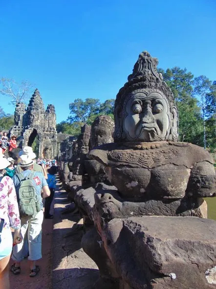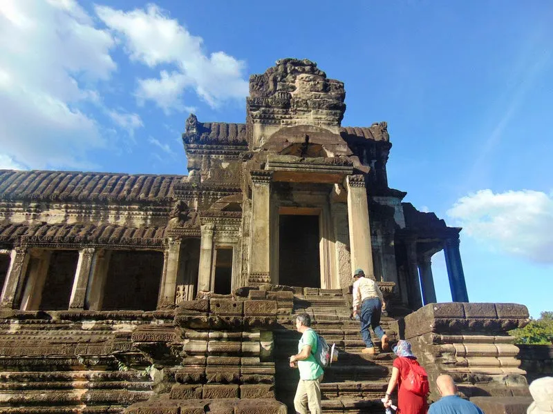 Cand m-am aflat in ultima zi a calatoriei in Vietnam, mi-am spus ca nimic nu poate fi mai frumos decat locurile vizitate in aceste zile. Insa nici nu am terminat de rostit aceasta idee, ca am ajuns in Siem Reap din Cambodgia, mai exact, in complexul Angkor Wat. Nu as putea spune care dintre temple mi-a placut cel mai mult, fiecare are un farmec aparte: Angkor Wat - cu cele cinci turnuri marete ce sunt construite astfel incat sa se asemene unor flori de lotus, Templul Bayon - cu sutele de fete sculptate in piatra sau Templul Ta Phrom - cu radacinile colosale intortocheate printre ruine.