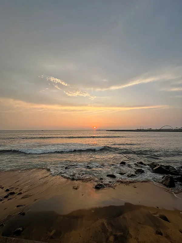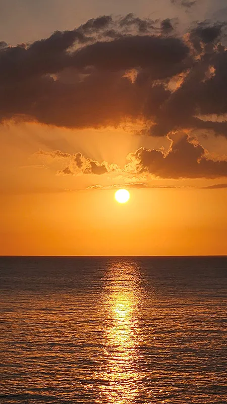Seara, am savurat cu adevarat un apus de soare si am sa-mi amintesc cum tarmul devenea din ce in ce mai rosu ca si cum s-ar fi aprins, ca apoi, dupa ce soarele se scufunda in ocean, sa remarc ca brusc, din spatele colinelor, a rasarit luna…