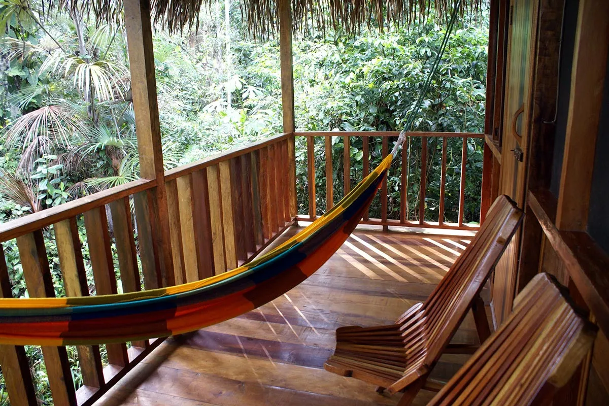 Cand am ajuns la lodge, am fost mai mult decat surprins vazand ospitalitatea acestor oameni: platouri cu gustari frumos ornamentate si delicioase, cocktailuri de bun venit in culori vii si frumos prezentate, o curatenie impecabila si, peste toate acel zambet lipsit de cea mai mica falsitate. Iar cand am parasit cladirea principala unde se afla restaurantul, barul si receptia, nu mi-am putut ascunde un Uau! vazand sistemul de podete construit ca o retea ingenioasa intre cladire si bungalow-uri. Cat despre bungalow-uri, nu stiu la ce te poti astepta mai mult: spatioase, curate, chiar elegante, tinand cont de locul in care se afla. Apoi, am admirat si terasa cu hamac unde te poti contopi cu jungla, bineinteles fara sticla la ferestre, ci doar cu plase de insecte, si cu un ingenios loc de depozitare din lemn incalzit cu raze ultraviolete unde sa iti pui aparatele electronice ca sa le feresti de umezeala. Si apropos de umezeala: senzatia cea mai puternica pe care am avut-o in cele patru zile in Amazon a fost ca voi putrezi! Hainele erau tot timpul umede, parul ud. Sunt multe lucruri de facut la Sacha Lodge si toate sunt deosebite.