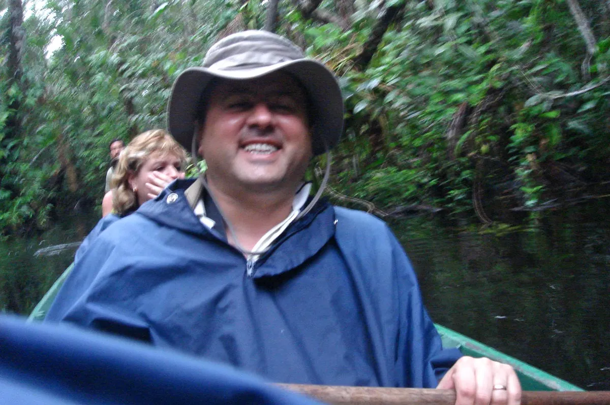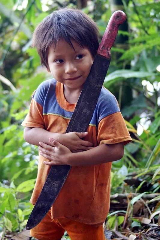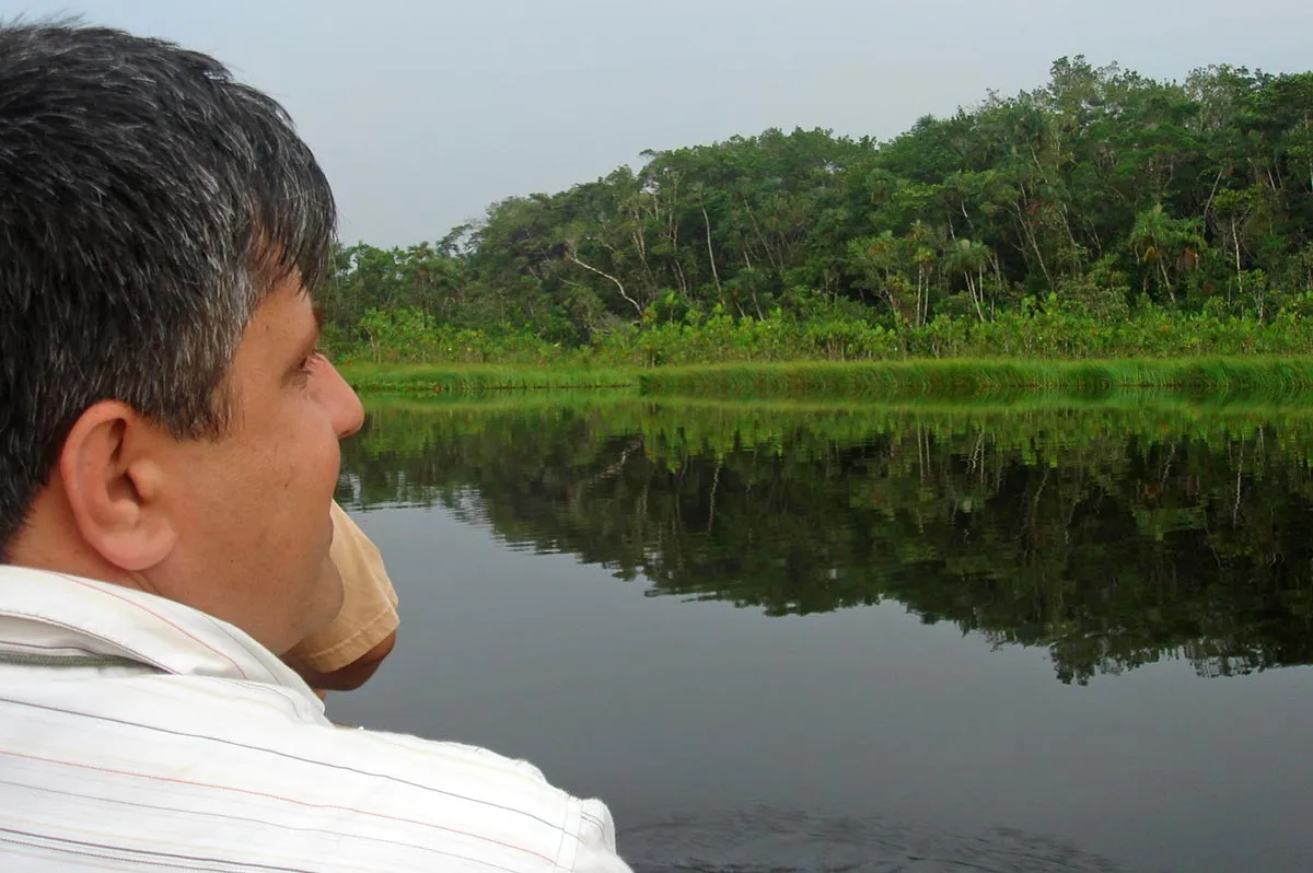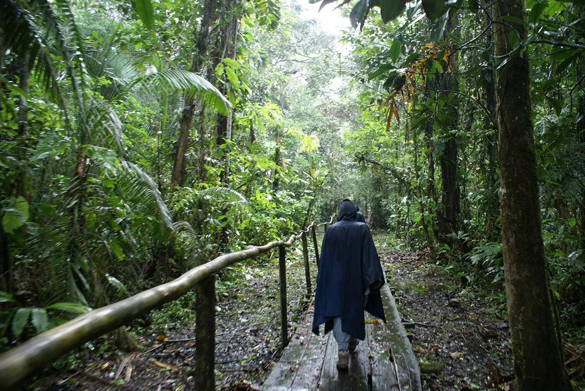 Si apoi, a urmat calatoria cu salupa pe Raul Napo catre inima padurii amazoniene, catre necunoscut si aventura. Vegetatia abundenta de pe maluri, colibele din stuf cu copii care se ivesc printre copaci ca sa ne faca cu mana, canoele cu provizii sau cu turisti sunt toate parte dintr-un tablou dinamic in care incercam sa surprindem cat mai multe imagini din viteza salupei. Si dupa doua ore, in sfarsit simteam barca incetinind si vedeam un debarcader unde ne asteaptau alti oameni zambitori, ne-am dezmortit si am facut repede cateva fotografii fascinat de ceea ce vedeam in jur: de chipuri, de natura, de pasarile care pareau a fi altele pe care le stiam, de maimuta care tocmai sarise pe o creanga ca sa-mi atraga atentia. Si ma infasuram in pelerina comoda si generoasa care mi-a fost pusa la dispozitie ca sa ma feresc de ploaie, ma intrebam care ploaie si, brusc, am auzit un huruit si m-am uitat sa vad ce s-a intamplat. Dintr-o data, mi-am dat seama, o simteam, era insasi ploaia aceea pe care am vazut-o in filme, pare ca era o rupere de nori si ma intrebam daca va ramane loc neinundat, ma speria, dar, in acelasi timp, era fascinanta.