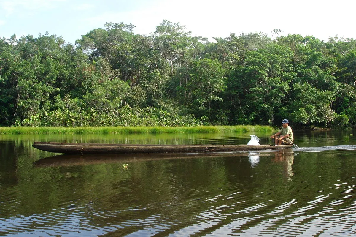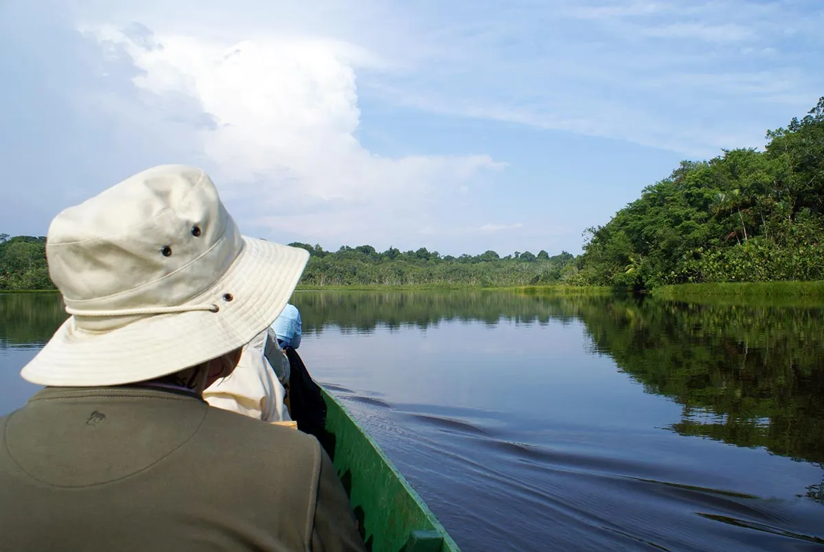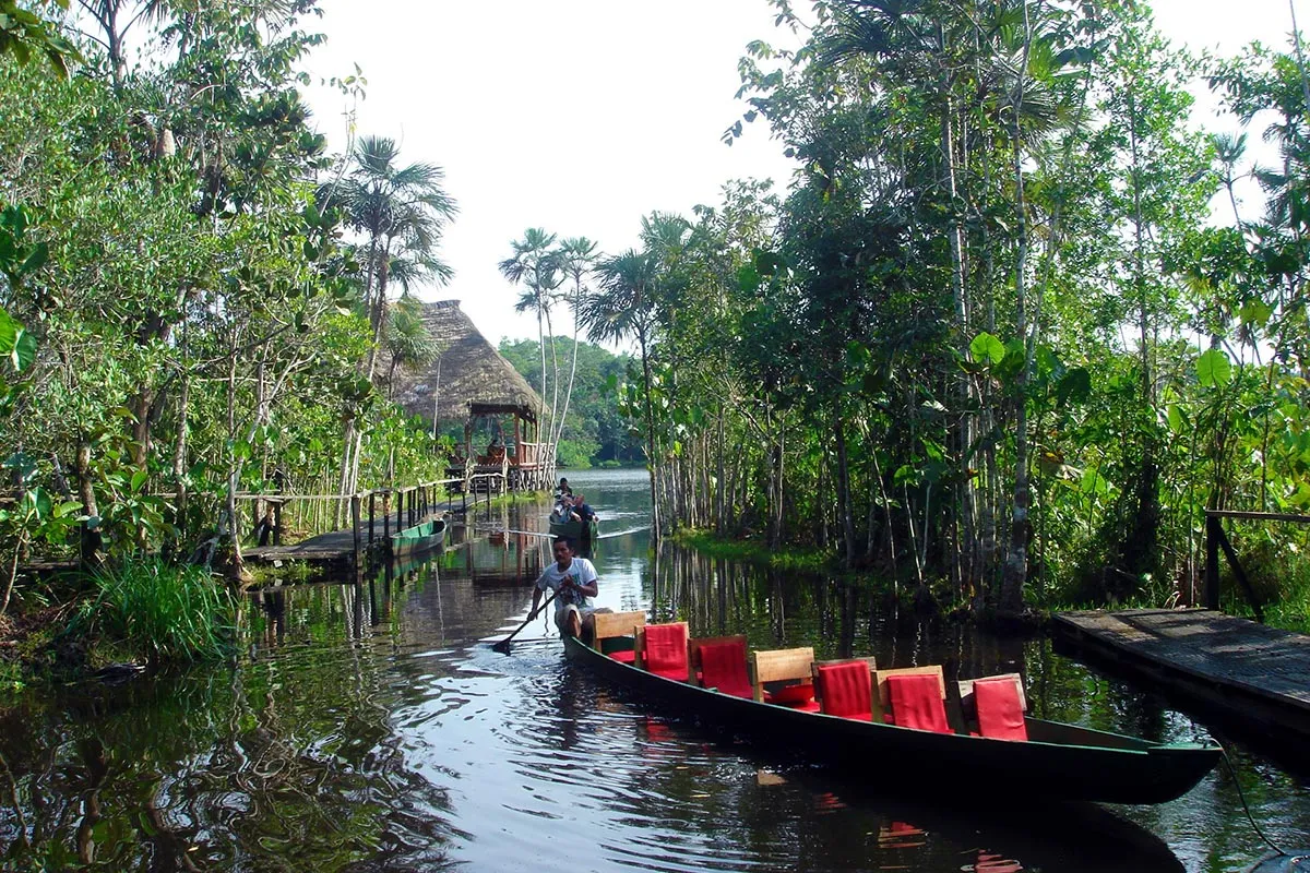 Apoi, totul a devenit Amazon, am pornit pe cararaile junglei, am vazut primele maimute, vegetatia parea ca se urca pe noi, flori si plante ciudate ne imbiau cu culori si arome noi, podetele lasau dedesubt canale de apa in care ne uitam spre a zari un caiman sau o anaconda. Si, peste toate, era acel zumzet continuu, ca in muzica ambientala pe care o asculti in avion pentru relaxare. Dupa circa o ora de senzatii minunate, poteca s-a sfarsit si ne-am trezit cu un brat de apa in fata, asa ca ne-am imbarcat intr-o canoe condusa de un indian, Quichua. Fosnetul canoei pe canalele inguste parea a fi o magaiere a simturilor in care intreg organismul se relaxeaza. Apoi, aveam in fata una din cele mai frumoase imagini pe care le-am vazut in viata: canalul ne ducea intr-o laguna strajuita de vegatatia abundenta de un verde atat de viu, cum n-am mai vazut, totul se reflecta in apa lina ca intr-o oglinda magica si, undeva, in fata, pentru a completa acest tablou, se afla Sacha Lodge. A fost o imagine pe care nu o voi uita niciodata, pentru ca a fost perfecta.