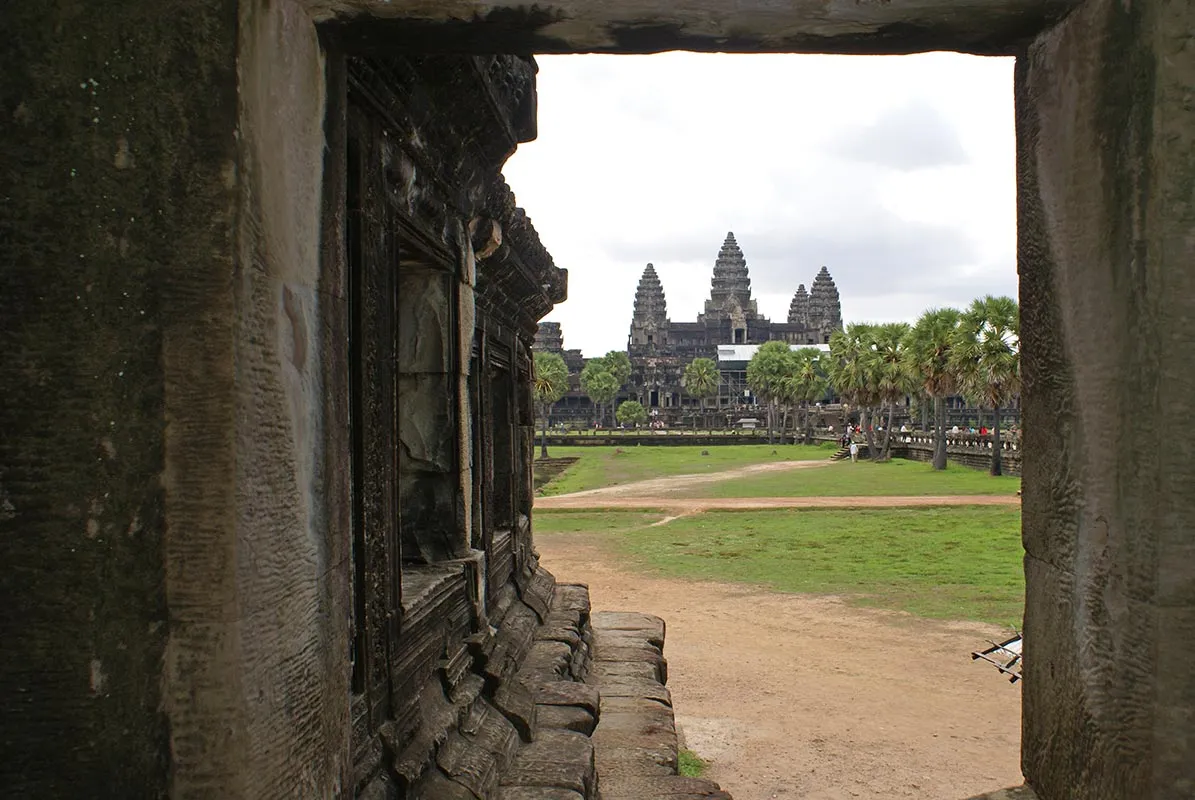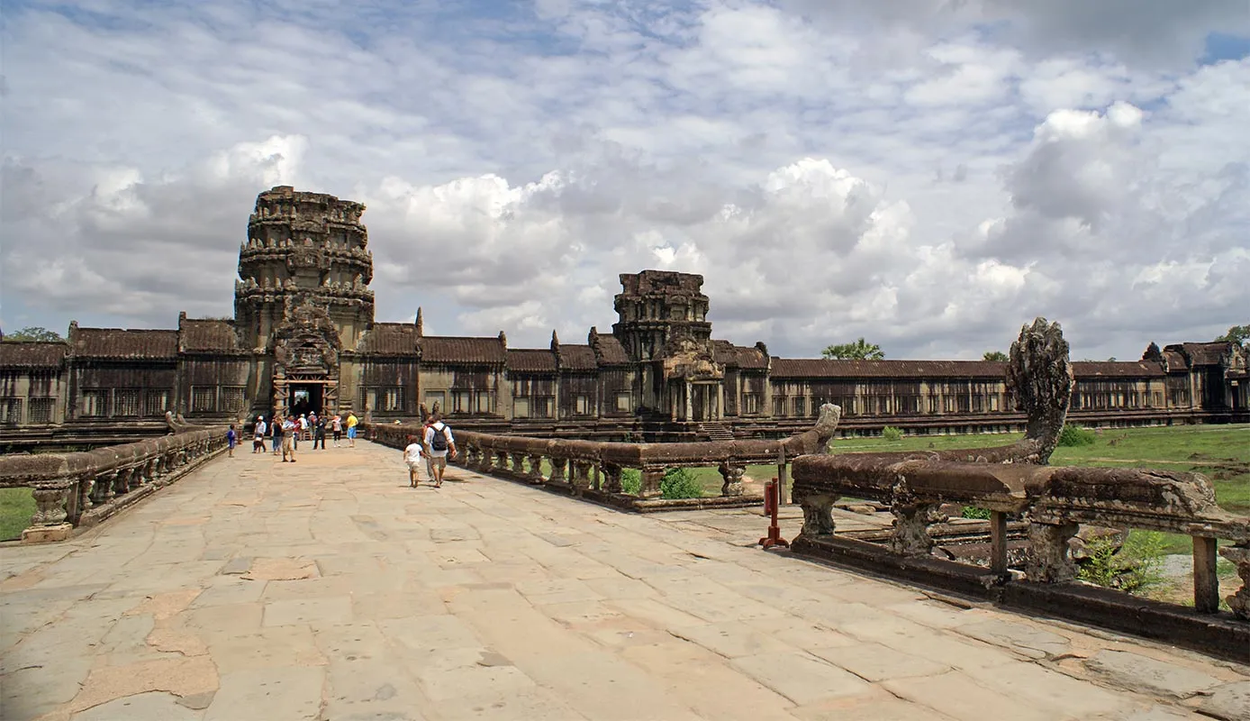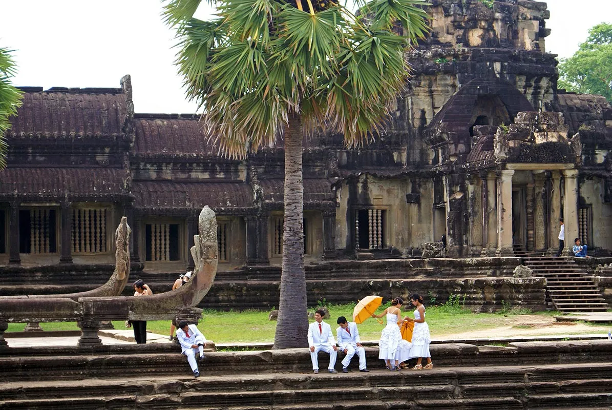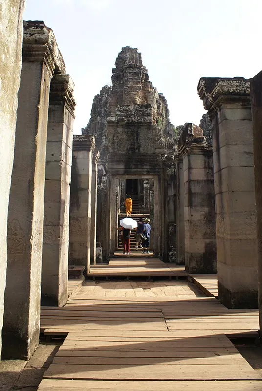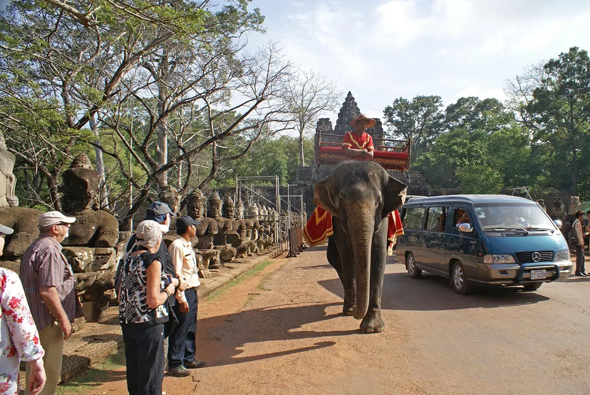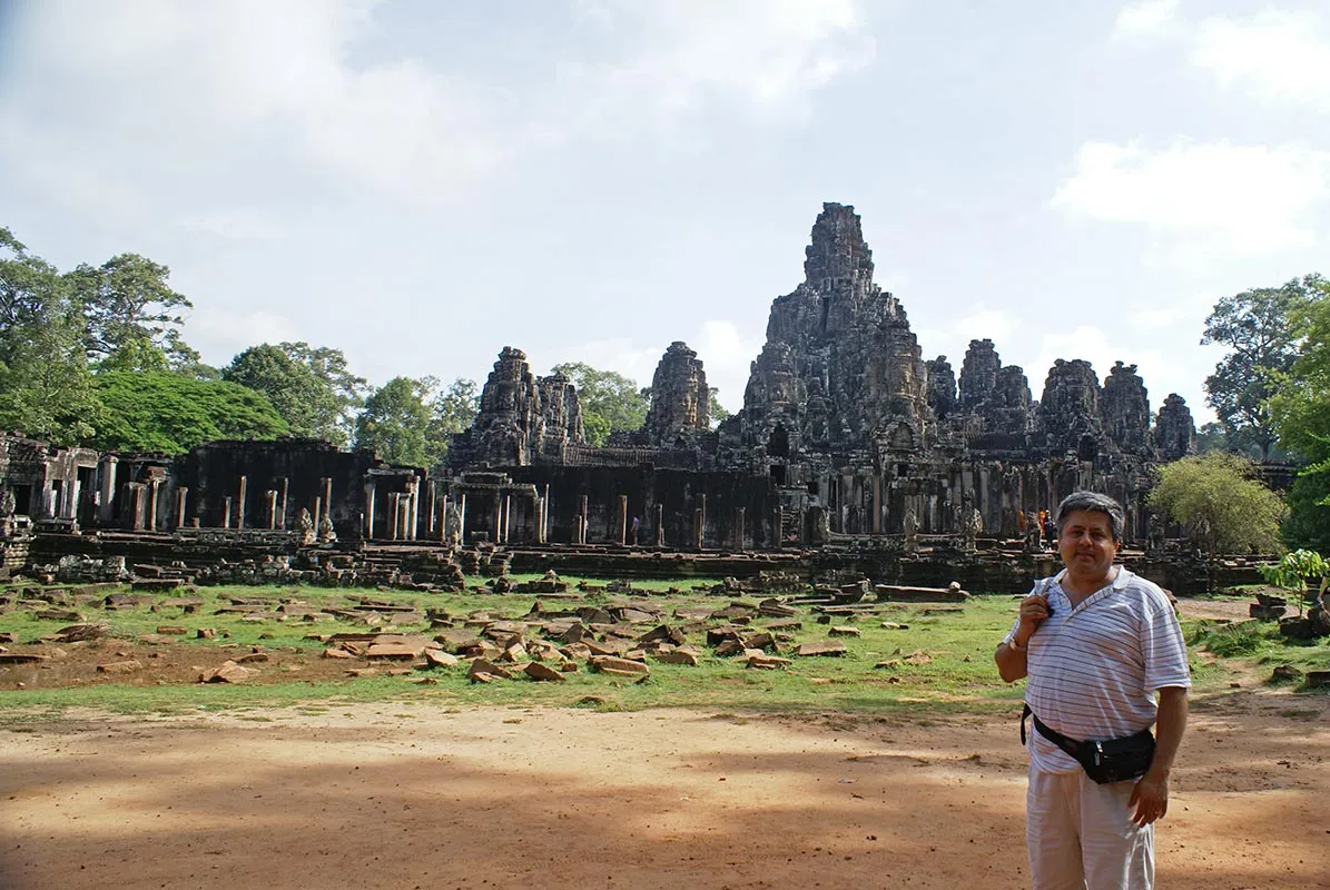 Zborul meu cu Air Angkor din Saigon catre Siem Reap a fost foarte placut. S-a vazut ca am intrat in Cambodgia: avionul impecabil, stewardesele politicoase in cel mai pur mod asiatic, culori calde (portocaliu cu mov). Recomand cu caldura aceasta companie. Ajuns in Siem Reap, am coborat direct pe pista, intrucat aeroportul este foarte mic. Dupa formalitatile pentru viza (personal extrem de serviabil si rapid, astfel incat toata procedura a durat zece minute), am luat bagajele si m-am intanit cu ghidul care era la iesire, ma astepta cu semn Eturia si numele meu.