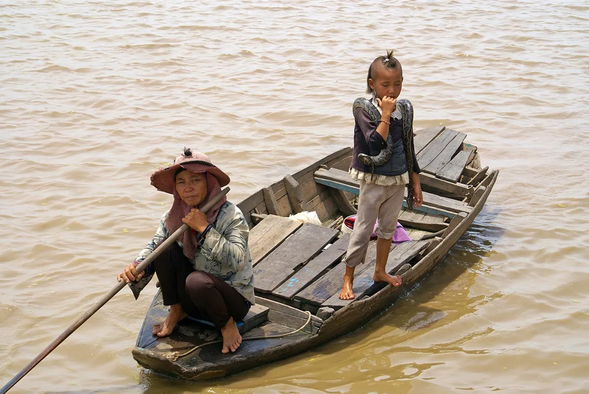 A doua zi, trebuia sa vizitez templele, dar mi-au schimbat programul pentru ca era o sarbatoare importanta si am facut un tur in imprejurimile Siem Reap. Prima zona vizitata a fost Banteay Srey Village. Drumul pana acolo dureaza o jumatate de ora, iar peisajul este unul spectaculos, cu campuri inverzite, cu bivoli de apa si sate pitoresti. M-a uimit curatenia din aceste sate si oamenii - peste tot politicosi si amabili. Practic, excursia este bazata pe a observa case traditionale, dar si diverse obiceiuri locale sau manufacturi din Ratan si cocos. Sunt insa si doua temple foarte frumoase pe care eu le-am vazut pe fuga. Recomand aceasta excursie pentru ca este relaxanta si ideala atat in perioada noiembrie – ianuarie, cand se culege orezul, cat si in februarie, cand este o luna de sarbatori locale. Am stat cam o ora prin zona, oprind in mai multe satucuri, dar si la doua temple frumoase, ascunse prin vegetatie. Apoi, am plecat catre Tonle Sap. Lacul este foarte secat in perioada martie - iunie, astfel incat nu prea este de vizitat. Perisajul nu este spectaculos, desi casele pe picioroange sunt inca acolo, totul este tulbure si lipsit de verdeata. Totusi, pentru mine, experienta a fost una interesanta. In noiembrie - martie este un must see. Barcile cu care se opereaza plimbarea pe lac sunt destul de vechi si sub calitatea vazuta de mine in Vietnam.