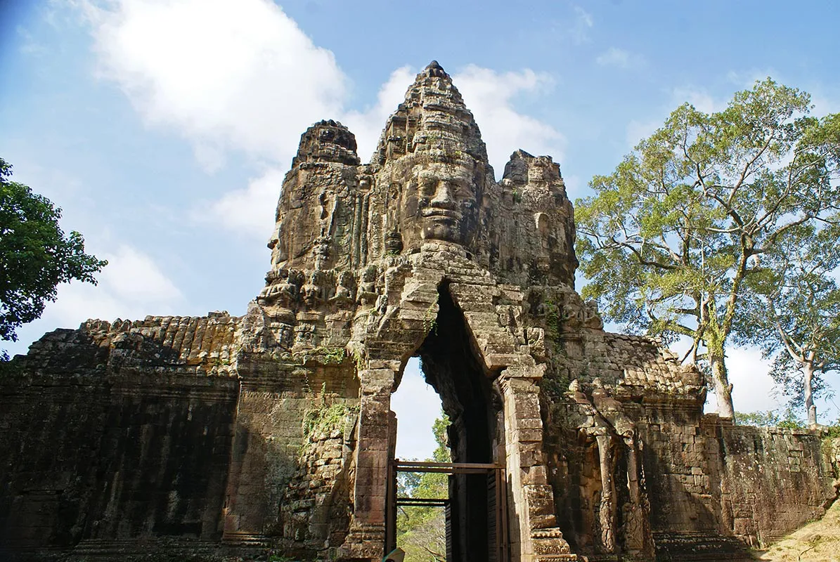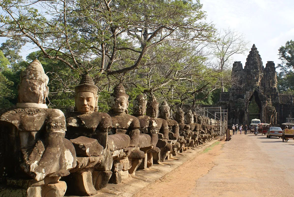 Apoi, am fost sa vad Angkor Thom. Am facut o vizita scurta de aproape doua ore. Mi-a placut foarte mult imbinarea intre natura si arhitectura. Peisajul este fabulos si, mai ales in luna mai, ies niste poze superbe! Podul cu poarta de intrare peste lac, dar si statuile - alternanta chipurilor lui Buddha in diverse ipostaze - impresioneaza.