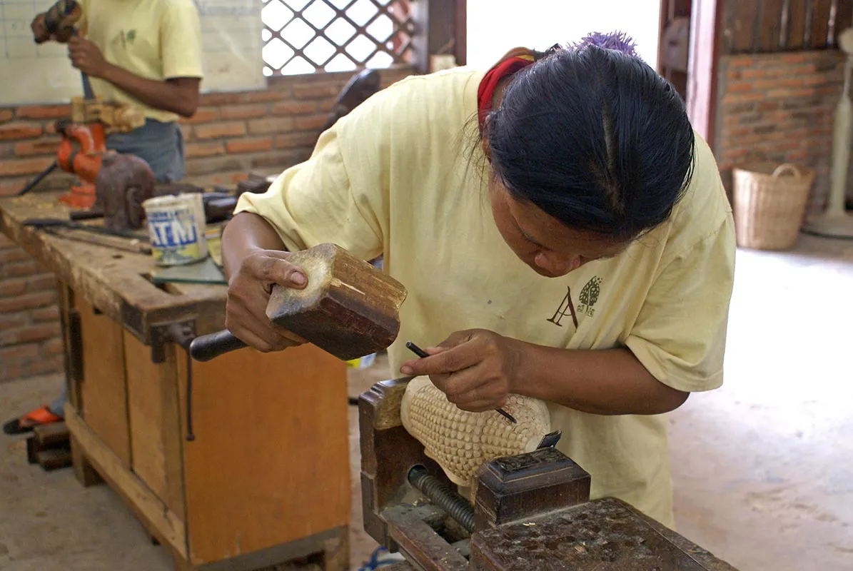 Intors in Siem Reap, am facut o vizita la Artisans Angkor. Este o zona cu mai multe ateliere de handicraft. Proiectul in sine are scopul de a ajuta comunitatile locale si a conserva traditiile. O parte dintre incasari se duce direct la mesteri. Se face mai intai un tur pe la diverse ateliere, si anume pictura, sculptura in lemn, sculptura in bronz etc, si apoi (normal) exista un magazin de unde poti cumpara anumite produse. Preturile sunt destul de mari pentru Cambodgia, dar e drept ca lucrurile sunt de inalta calitate si merita pentru cei ce doresc ceva deosebit. E si un mic restaurant acolo, am stat pe terasa si am baut un suc de mango excelent si un expresso cu patru dolari ambele.