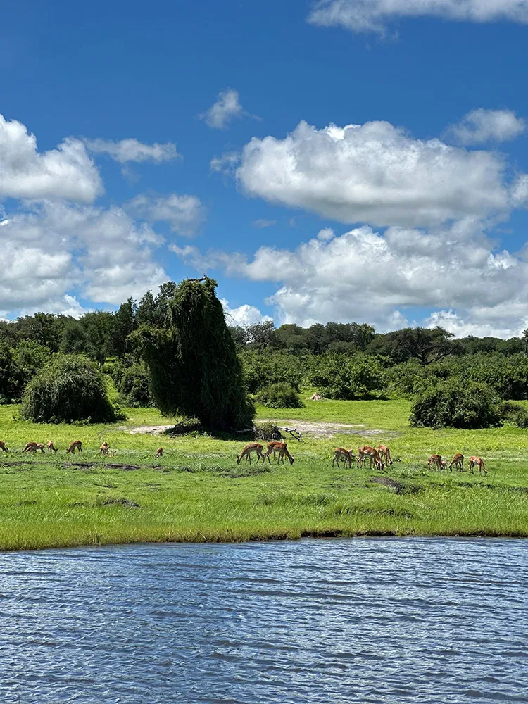 Dupa Parcul Kruger a urmat safari in Parcul National Chobe, ce a oferit o perspectiva diferita asupra vietii salbatice. Pe langa experientele de pe uscat, croaziera pe Raul Chobe ne-a permis sa observam hipopotami, crocodili si numeroase specii de pasari intr-un peisaj de vis. Parca nu ne mai doream sa se termine tot acest moment magic in care fusesem invaluiti.