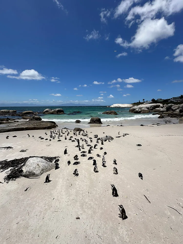 Ulterior, in Peninsula Cape am ajuns si la Capul Bunei Sperante, un loc emblematic unde oceanul intalneste feeric formatiunile stancoase, iar pe Plaja Boulders ne-am bucurat de jucausii si simpaticii pinguini africani.