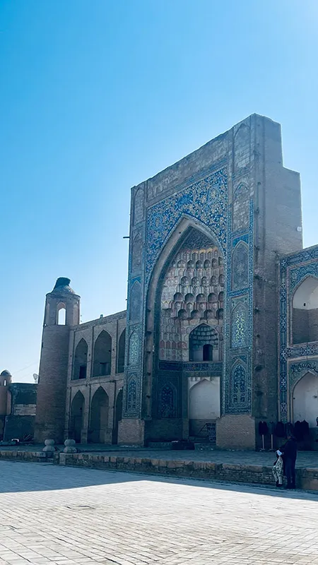 Bukhara ne surprinde cu ziduri mari, cladiri vechi si noi. In razele soarelui la apus, parca vezi in zare caravane ce vin sa-si etaleze marfurile, poposind in Caravan Saray -urile de la marginea orasului. In acest miraj se rescriu povesti de curaj si de iubire din vremuri trecute, ce dainuie pana in zilele noastre, trecand peste toate obstacolele timpului. Ramanem dusi de vantul desertului si intram in complexul Poi Kalon, un cartier intreg de madrase, moschei si un labirint de bazaruri. In mijloc, ascunsa bine, sta cea mai veche moschee, Magoki Attori, singurul loc de rugaciune al vremurilor apuse, un exemplu de unitate spirituala. Aici se rugau musulmanii in ziua de vineri, evreii sambata si crestinii duminica.