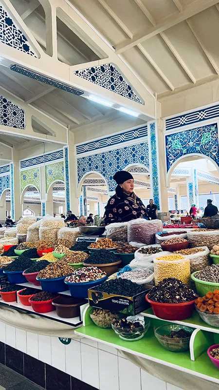 Ne-am pastrat cateva ore pentru ultimele cumparaturi in bazarul Siab, plin de ceramica, fructe uscate, seminte si imbracaminte traditionala, suveniruri, chiar si vin uzbec.
