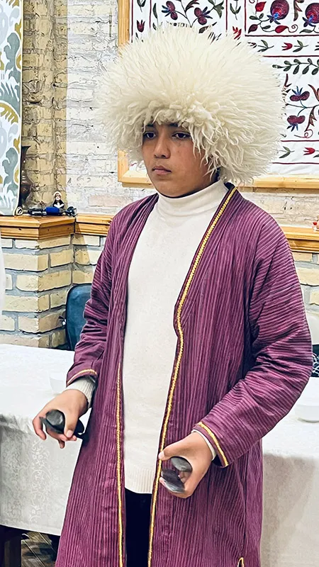 Hotelul pozitionat foarte bine, aproape de zidurile fortaretei Khiva, ne-a permis sa facem turul orasului vechi pe jos si sa ne bucuram de micile delicii intalnite in cale: Painea traditionala, “Nun”, moale si gustoasa se vinde la fiecare colt de strada si merge perfect cu sucul proaspat de rodie. Am probat caciulile traditionale din blana si lana, chugurma, folosite in trecut pentru protectia solara si ventilatia capului in timpul verii. Khiva ne surprinde cu zidurile galbene, minarete si madrase cu fatade albastre si turcoaz. Povestea turnului neterminat, minaretul albastru Kaltaminor, spune ca Amir Khan a ordonat sa fie construit cel mai inalt si mai frumos minaret, de unde sa se vada orasul Bukhara. Ca sa fie sigur ca arhitectul nu va mai construi un alt turn, l-a inchis in turnul albastru pana la finalizare, urmand sa fie omorat. Arhitectul, insa, a reusit sa-si faca doua aripi si sa evadeze, astfel impersionantul minaret nefiind finalizat vreodata. Astazi are 29 de metri inaltime si a ramas emblema complexului Ichan Kala din Khiva.
