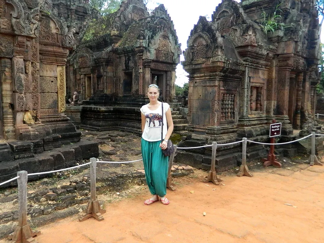 Templul cel mai drag mie este insa Bantey Srei, in traducere „Citadela femeilor si a frumusetii", un templu hindus de dimensiuni reduse, de o finete aparte. Cunoscut si sub numele de Bijuteria Angkorului, constructia a fost realizata in calcar roz. Pentru ca sculpturile si decoratiunile au fost lucrate cu o delicatete si minutiozitate nemaintilnite, legenda spune ca sunt opera unei printese.