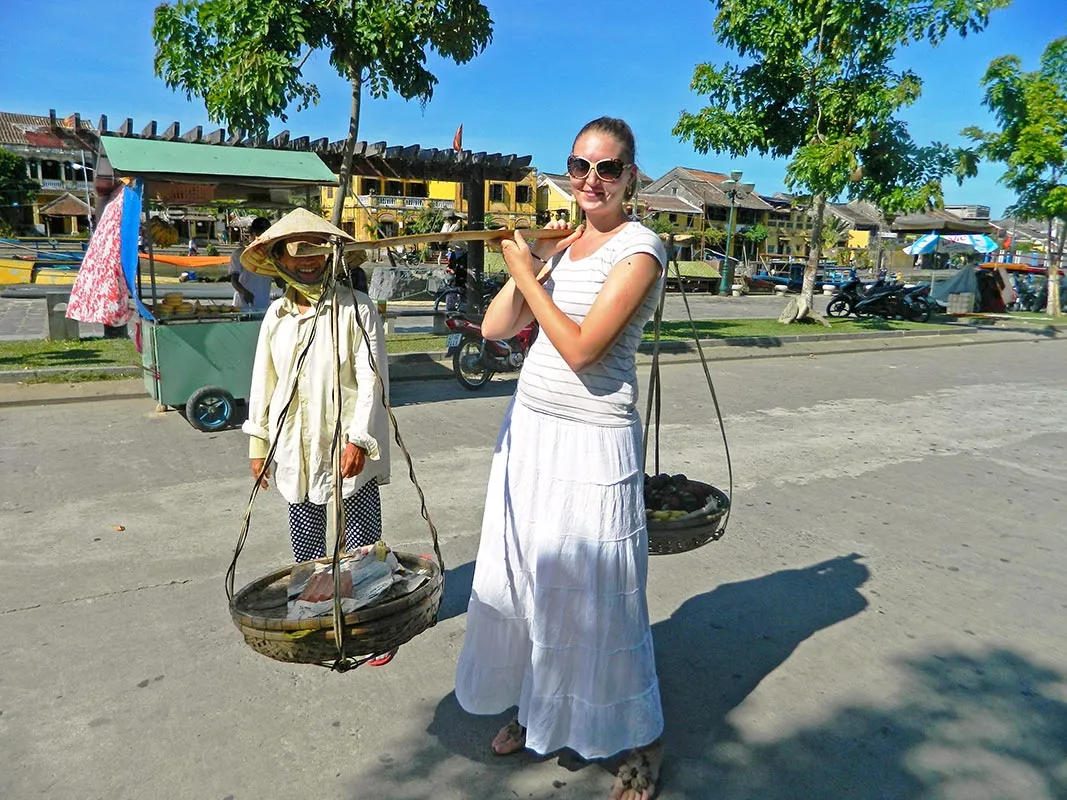 Dupa inca 40 de minute de mers cu autocarul, ajungi in micutul si pitorescul oras Hoi An. Cu inceputuri datand inca din secolul I, acest orasel a fost un important centru comercial si negustoresc, „poarta" principala a Asiei de Sud-Est pentru transportul mirodeniilor, dar chiar si a matasii naturale, aici producandu-se la scara larga acest material atat de cautat. Atrasi de puterea de atractie a acestei frumoase si prospere localitati, s-a mutat aici un numar mare de chinezi, japonezi si chiar indieni. Colonistii europeni (francezii, olandezii, portughezii) au gasit in Hoi An, intre secolele al XVI-lea si al XVIII-lea, un centru comercial prosper, in plina glorie. Odata cu „invazia civilizatiei europene", gloria orasului a inceput sa apuna, iar rolul comercial al zonei a fost preluat de un nou oras infiintat de la zero, Danang.