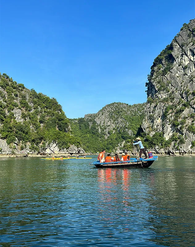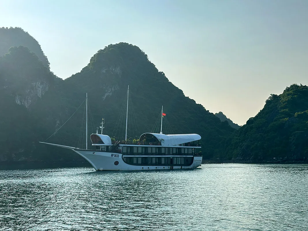 In Vietnam trebuie sa ajungi obligatoriu si in Ha Long Bay, aceasta fiind si urmatoarea noastra oprire de pe traseu. Aici am petrecut doua zile intr-o croaziera prin golf. Experienta a fost inedita intrucat am luat parte pe vas la un curs de gatit, invatand sa facem pachetele de primavara, dar am avut si ocazia sa inotam, sa ne plimbam cu caiacul sau sa participam la o clasa de Tai Chi.