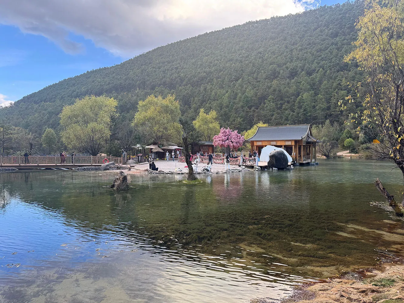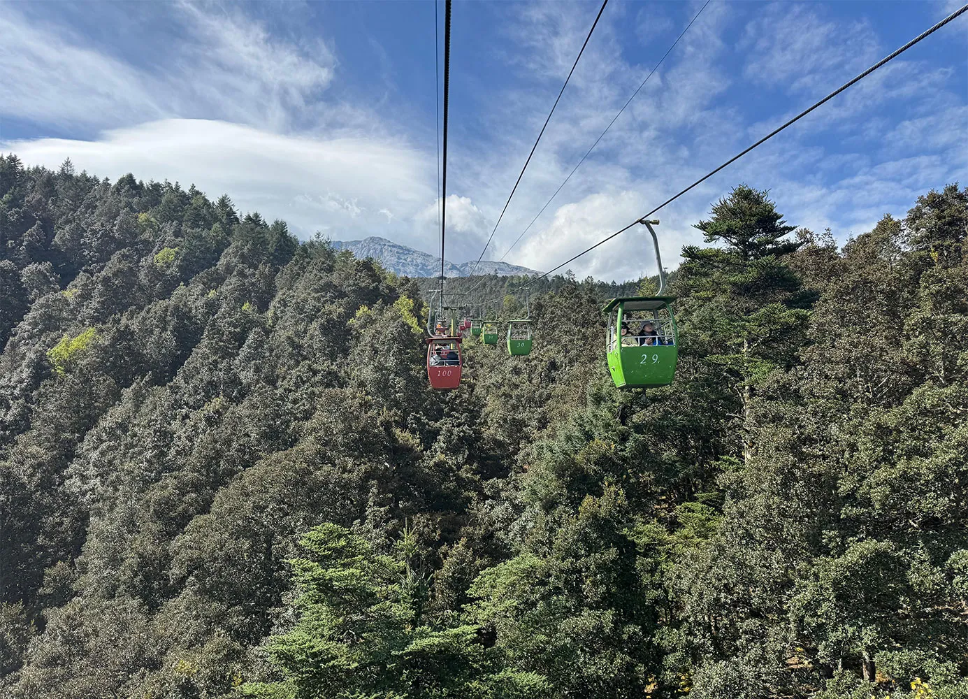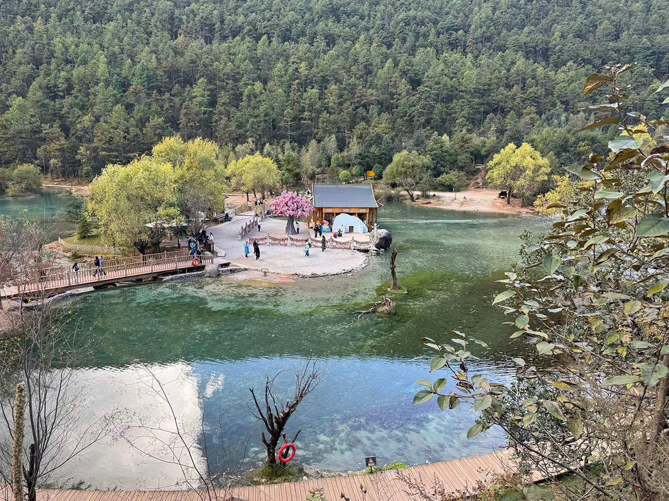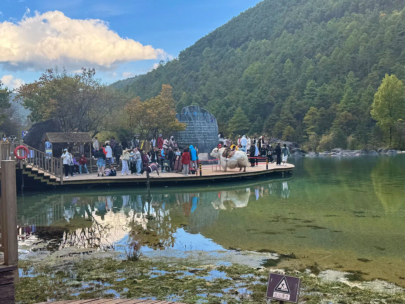 Am petrecut o zi minunata in Parcul National Jade Dragon Snow Mountain din provincia Yunnan. Am ajuns la 3.530 m, in Poiana Yak-ului, si apoi la 2.900 m unde am vazut un lac artificial cu apa verde-albastra datorata continutului de cupru. Bineinteles, totul este organizat perfect in parc, in favoarea si spre usurarea drumului calatorului.
